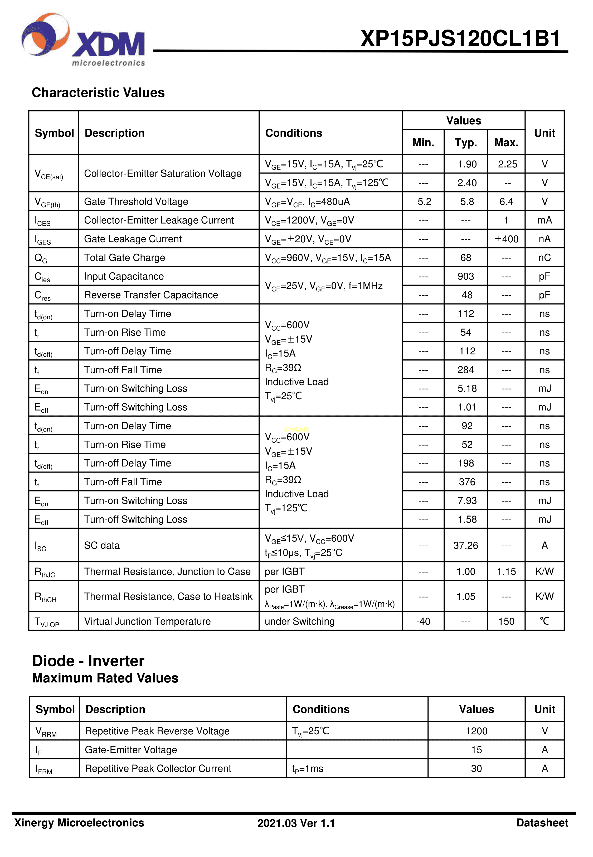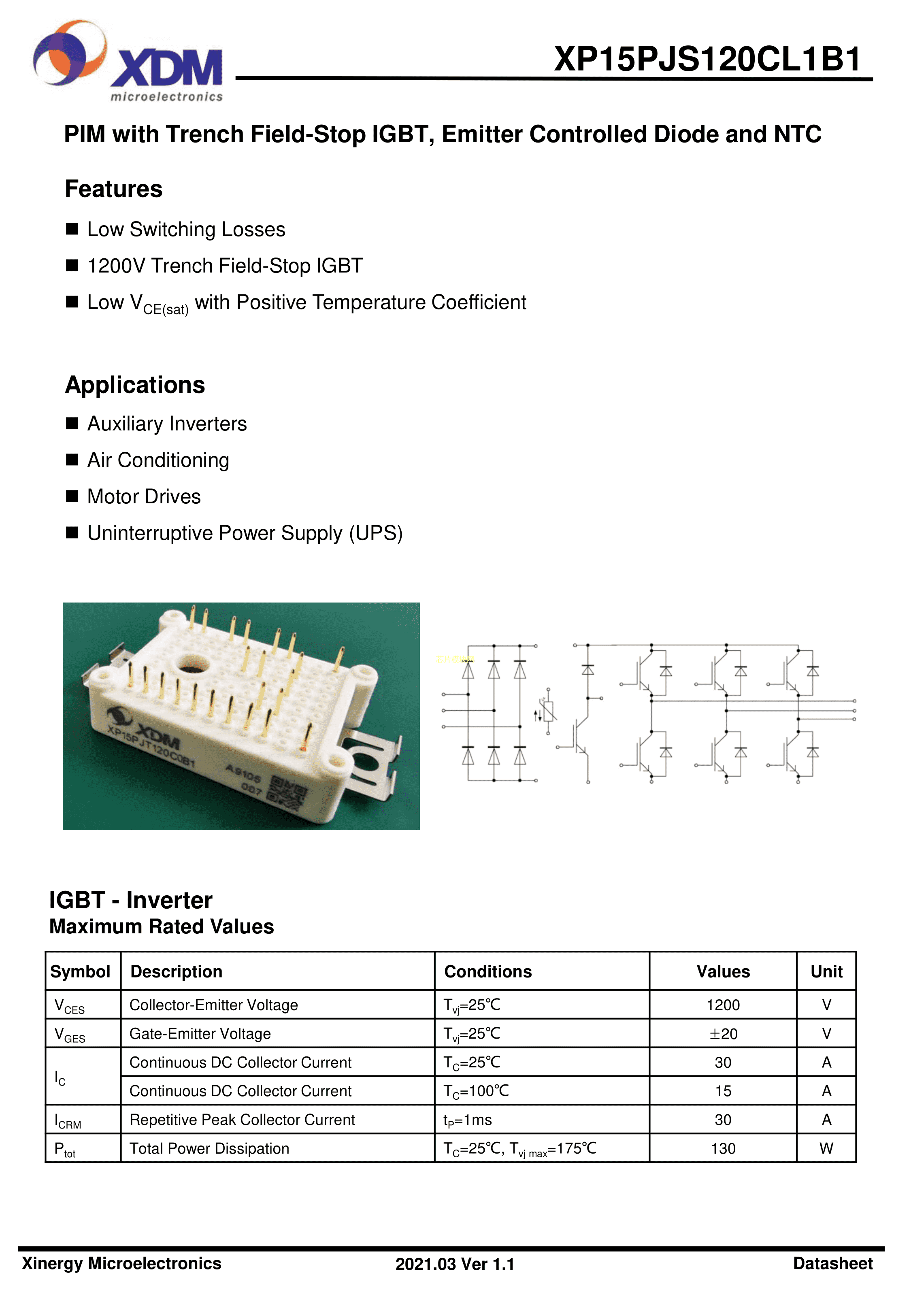 XP15PJS120CL1B1数据手册-封装XDM(芯达茂)PDF规格书,中英文下载