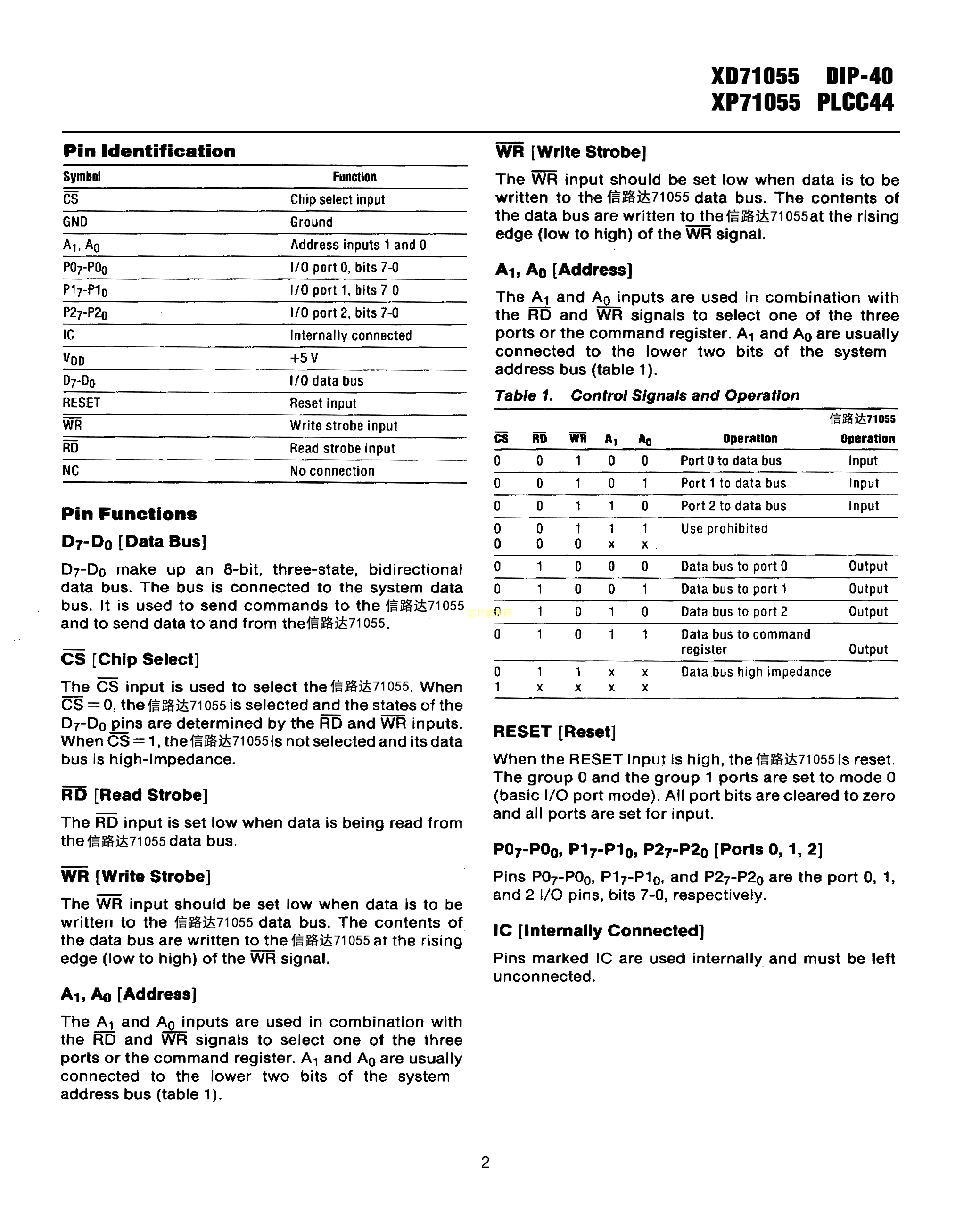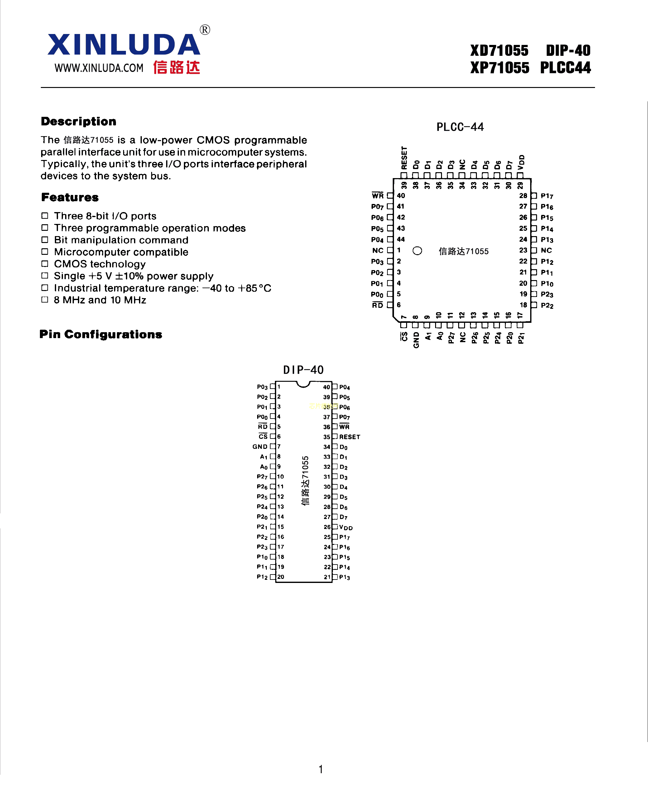 XP71055数据手册PLCC-44封装XINLUDA(信路达)PDF规格书,中英文下载