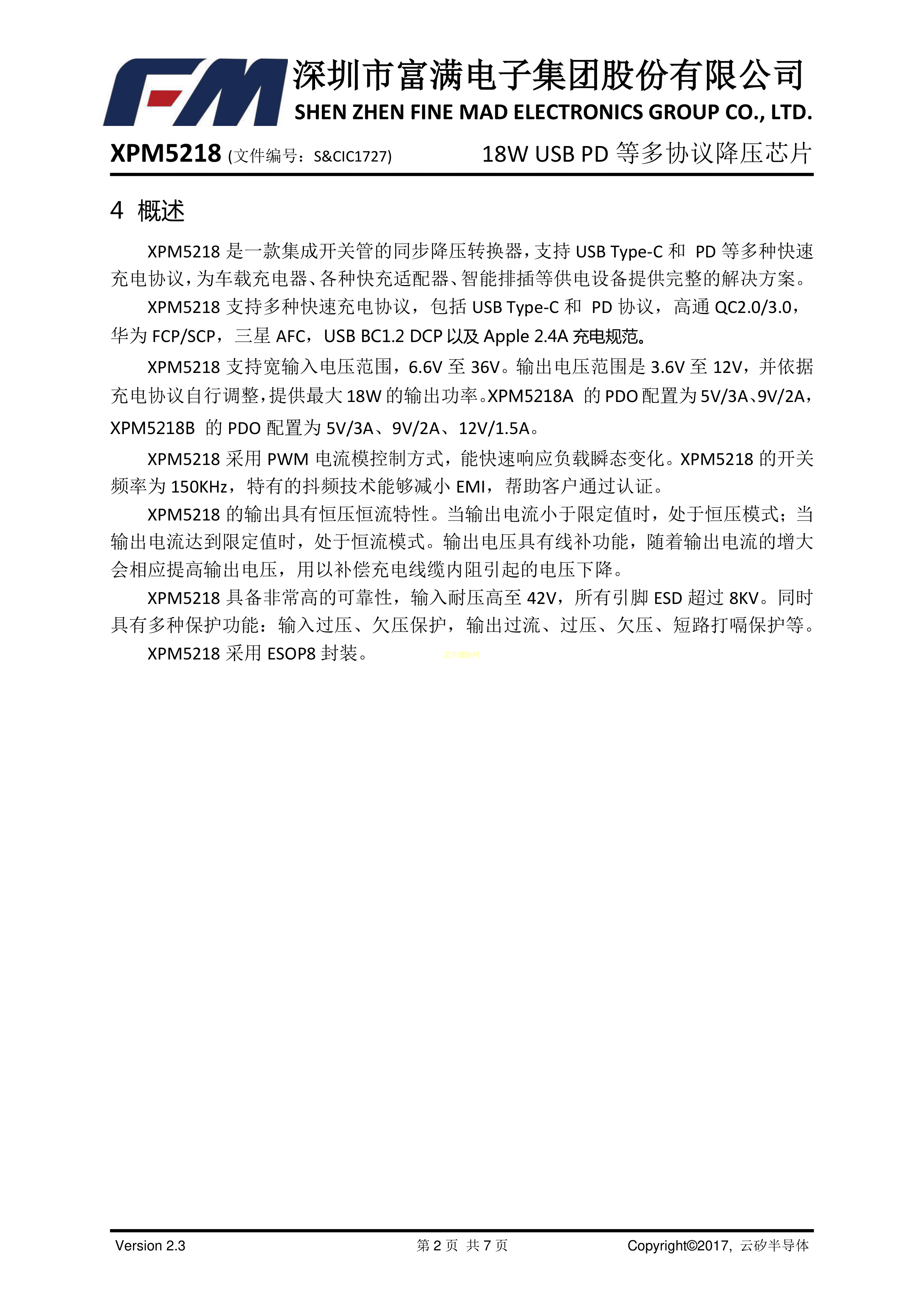 XPM5218BPDF规格书,中英文下载