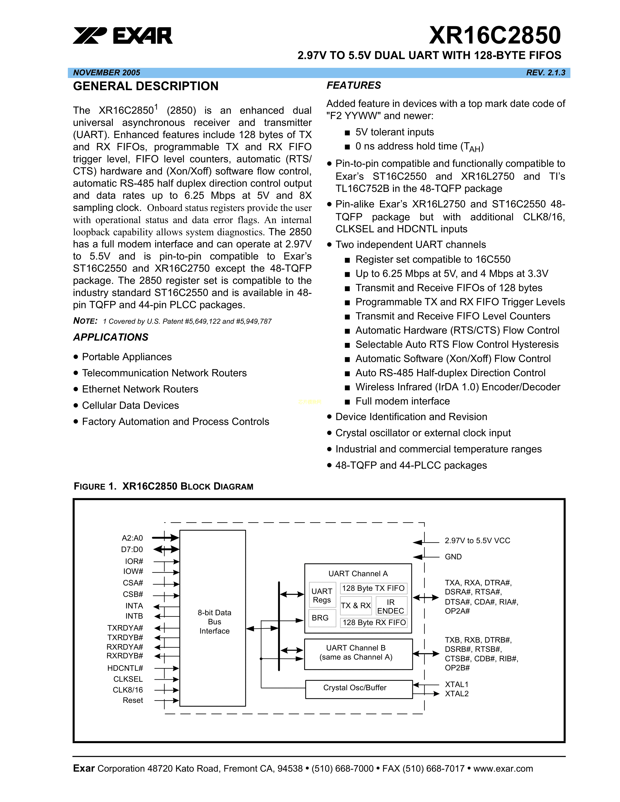 XR16C2850CJTR-F数据手册PLCC-44(16.59x16.59)封装MaxLinearPDF规格书,中英文下载
