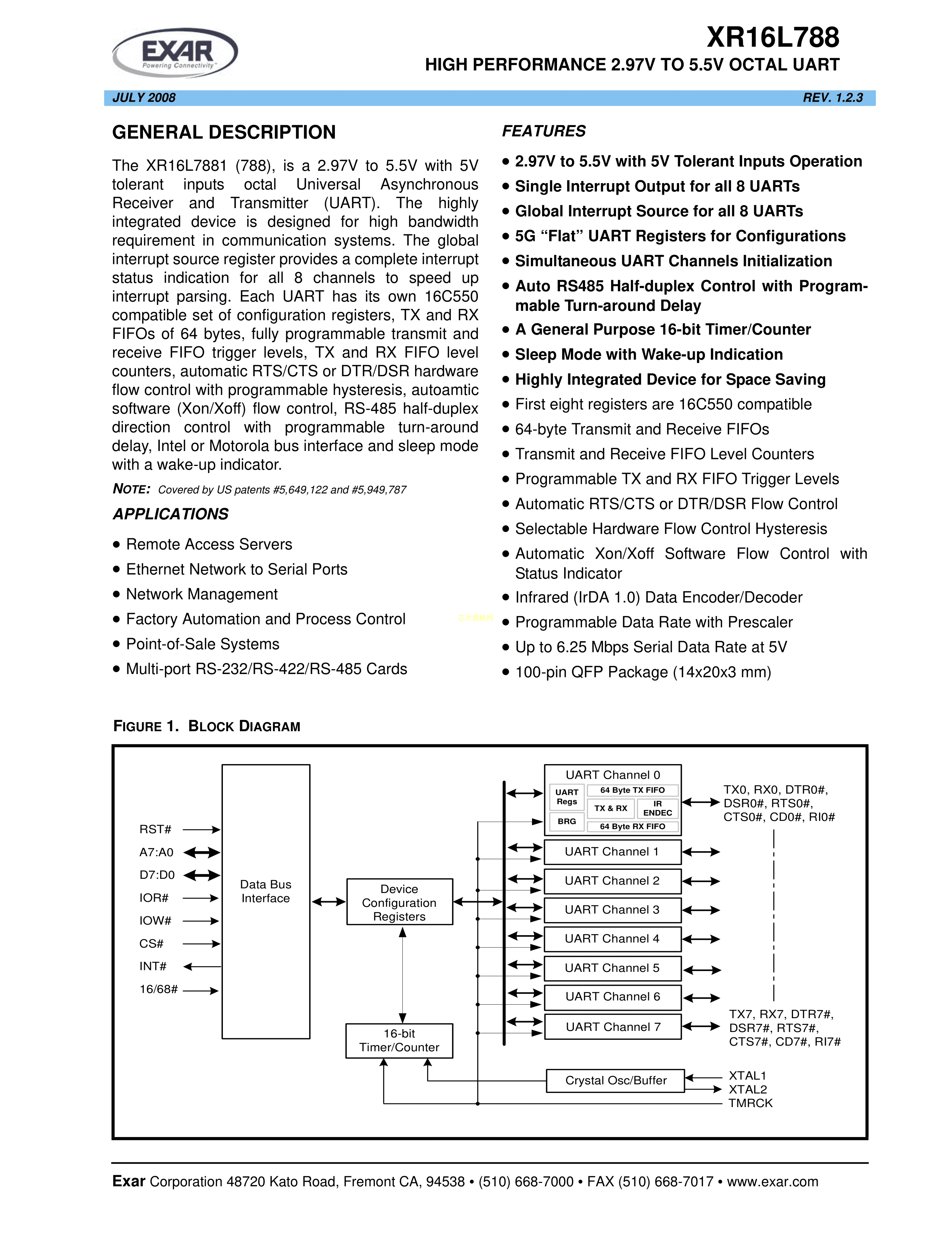 XR16L788IQ-F数据手册QFP-100封装MaxLinearPDF规格书,中英文下载