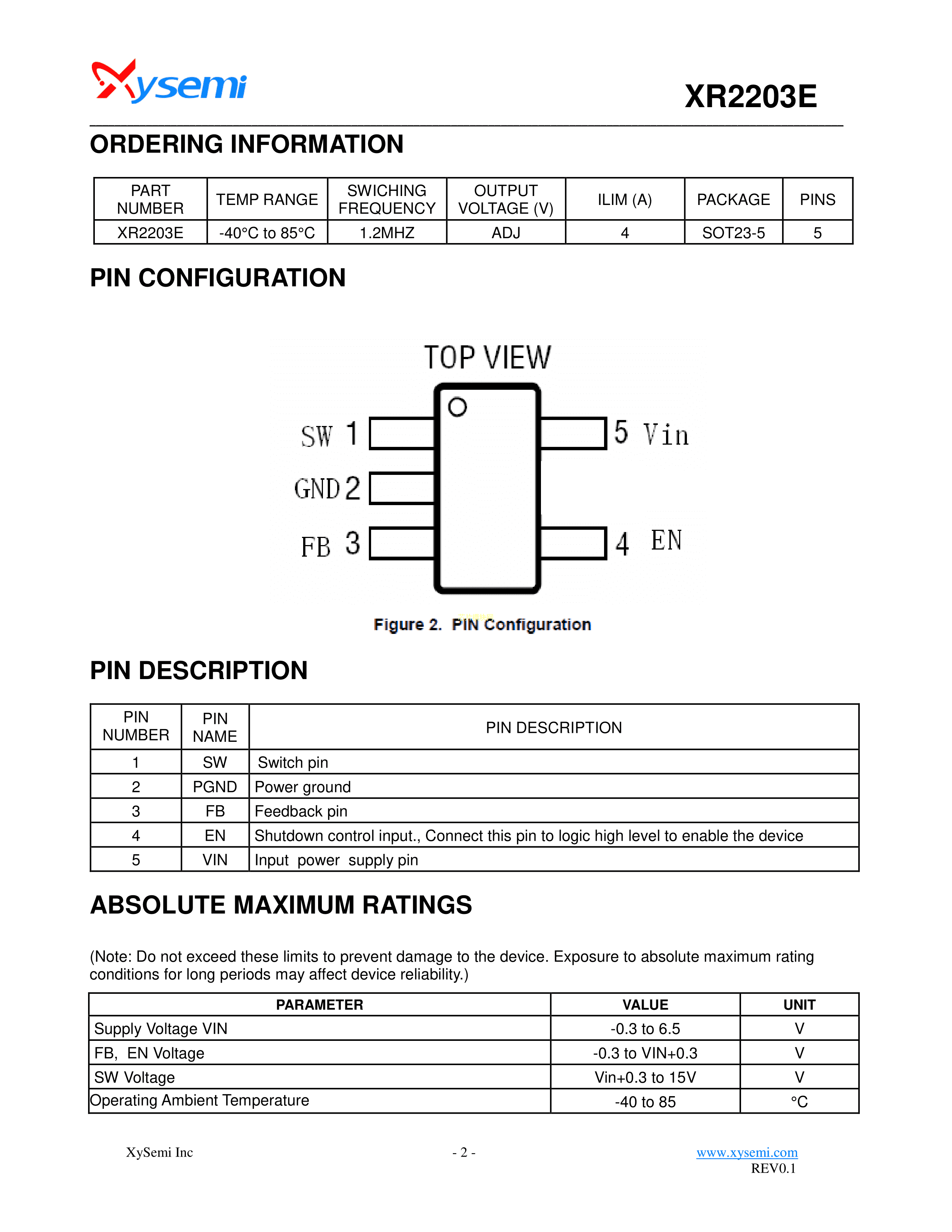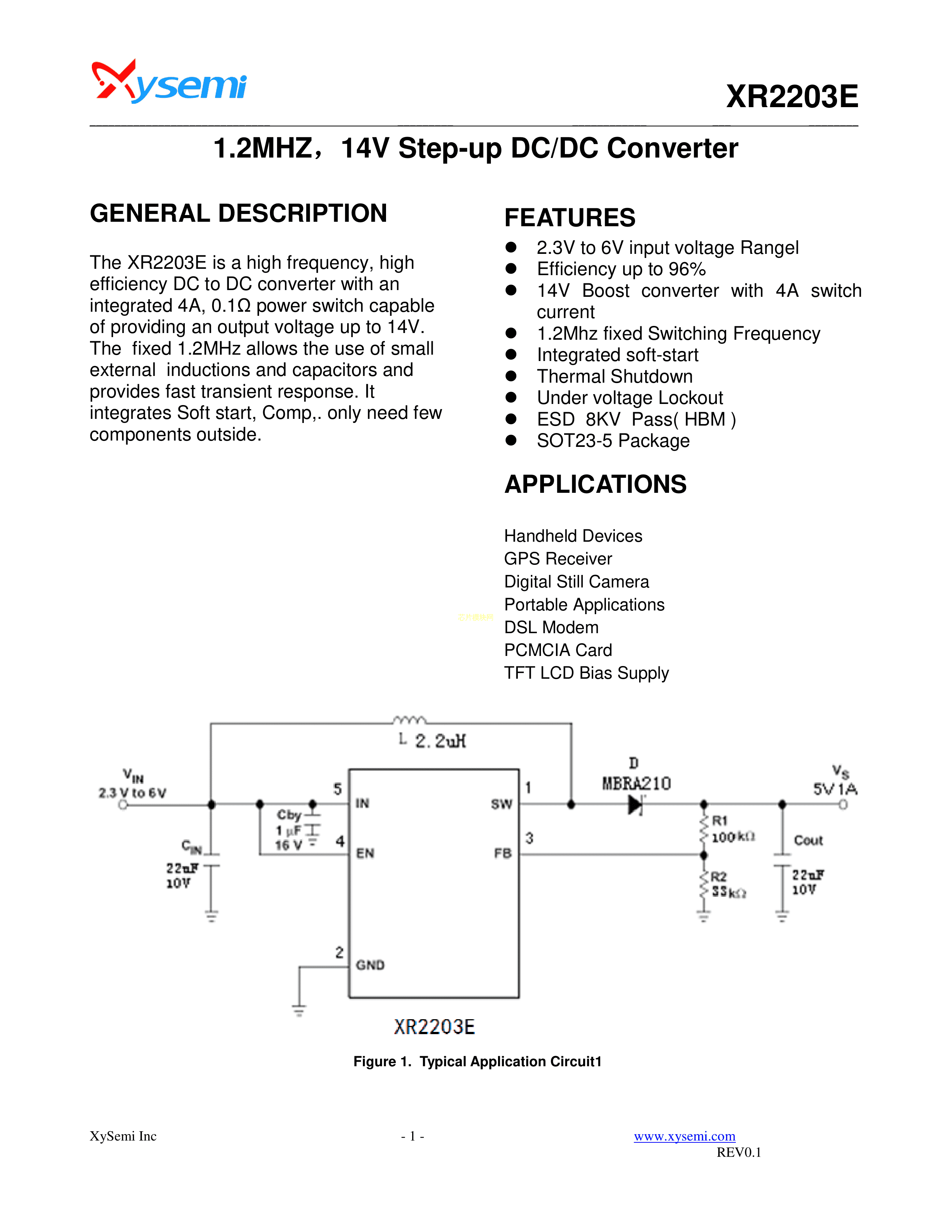 XR2203E数据手册SOT-23-5封装xysemi(赛芯微)PDF规格书,中英文下载