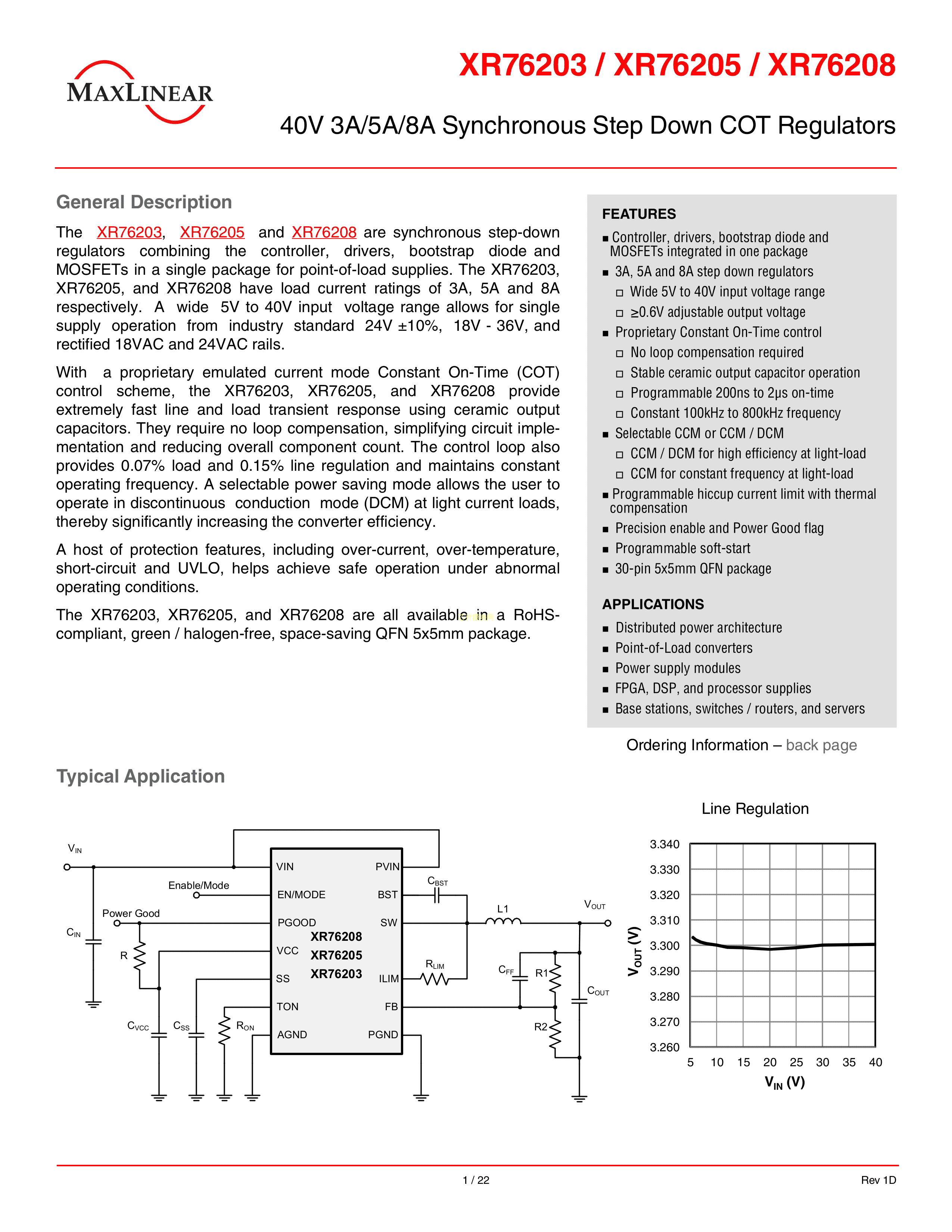 XR76208ELTR-F数据手册QFN-30封装MaxLinearPDF规格书,中英文下载