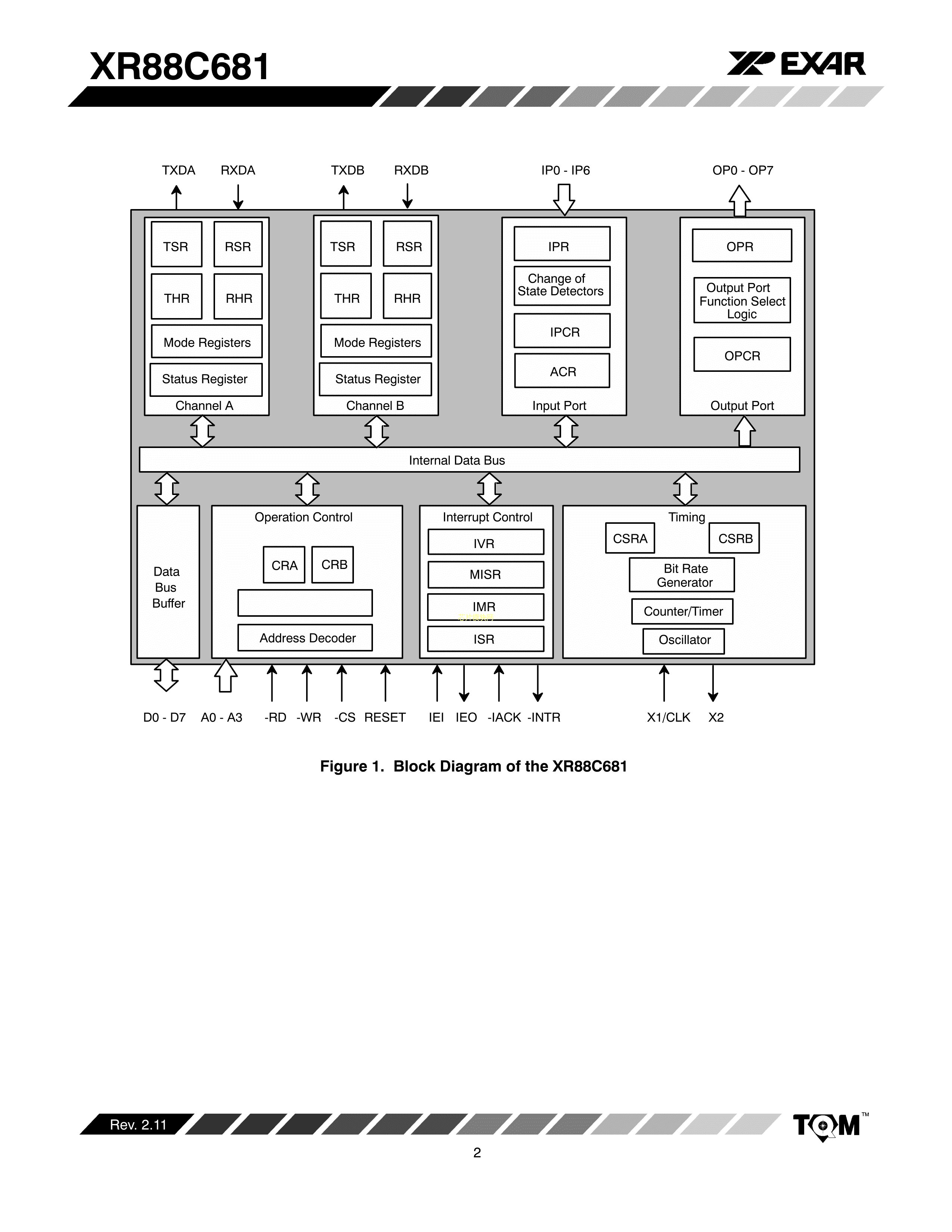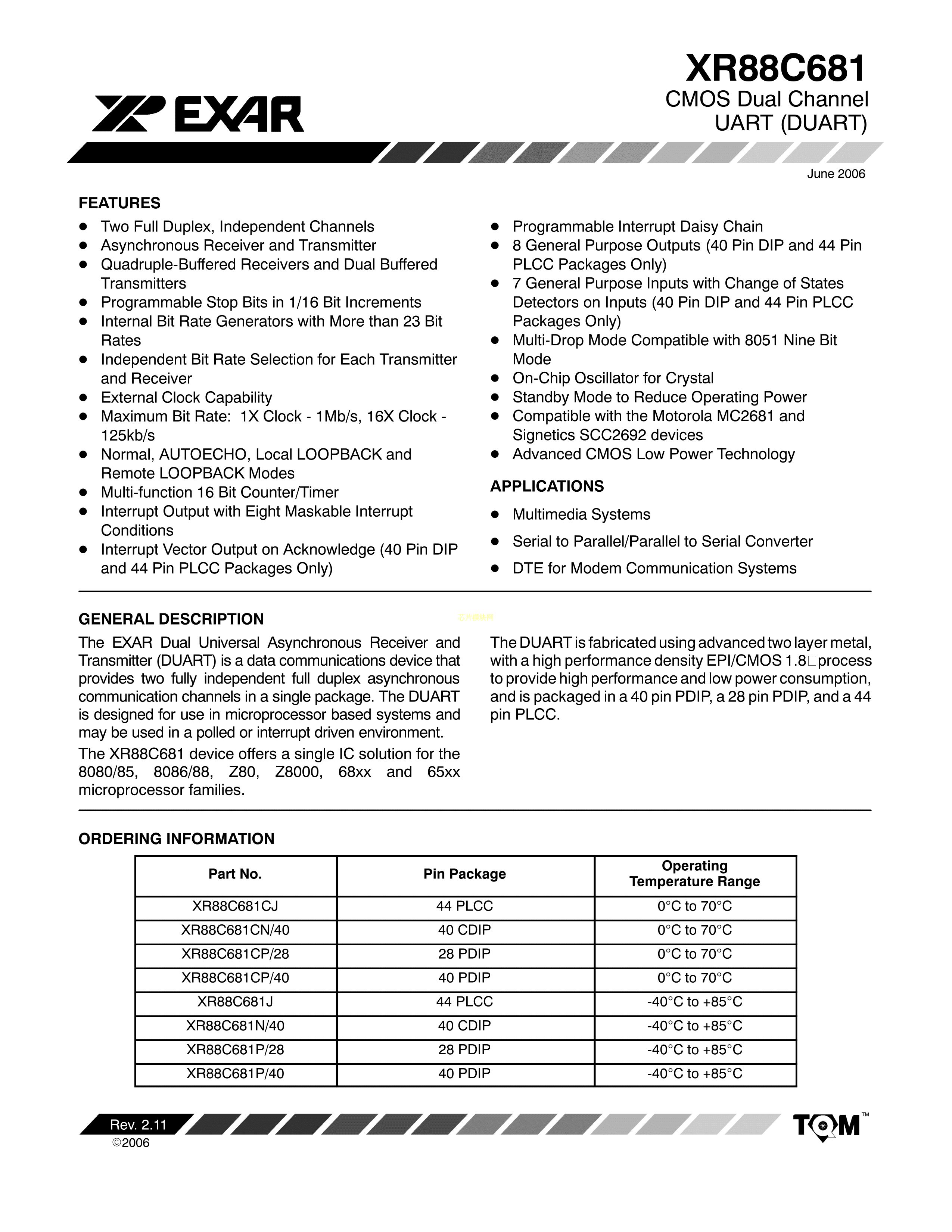 XR88C681J-F数据手册PLCC-44(16.59x16.59)封装MaxLinearPDF规格书,中英文下载