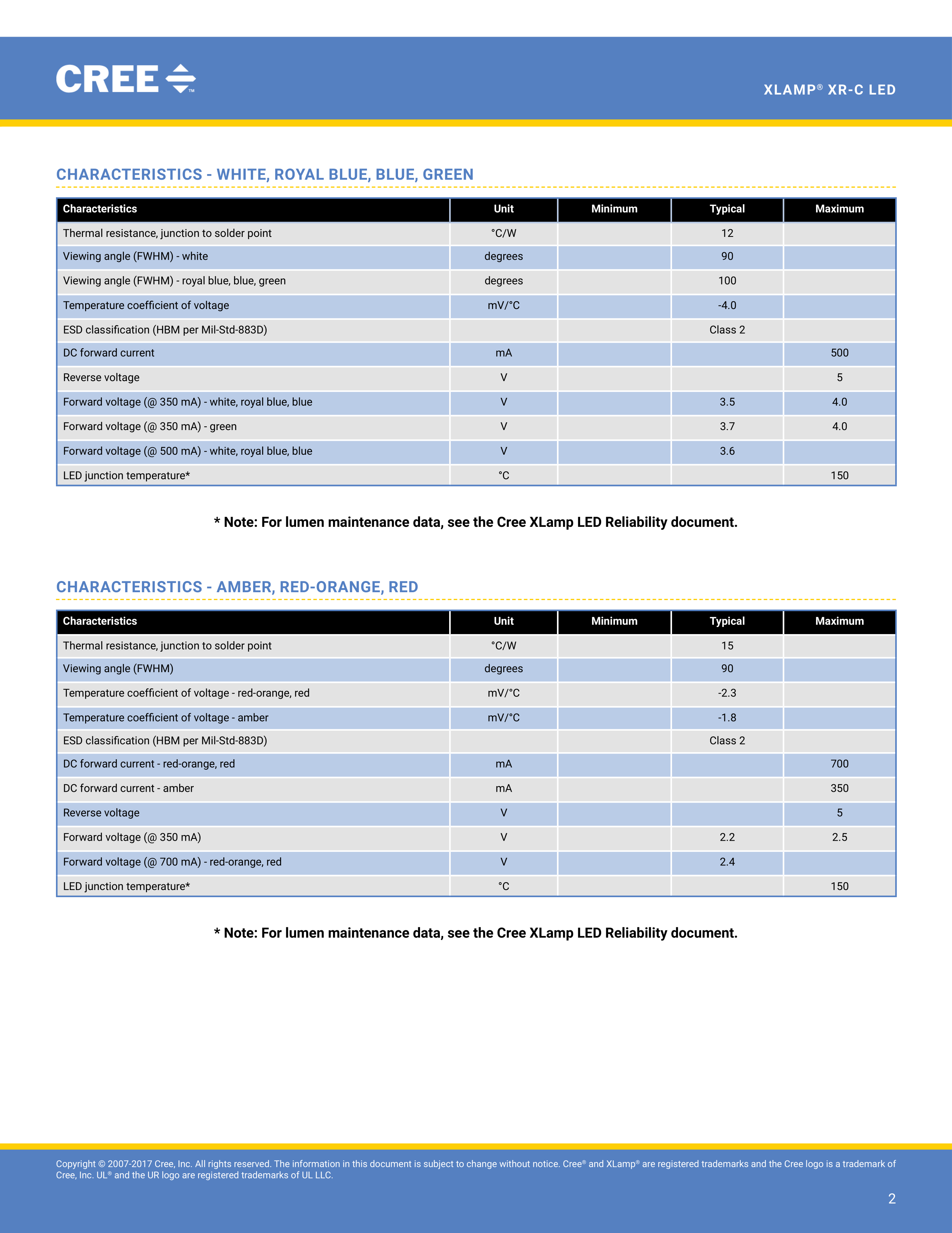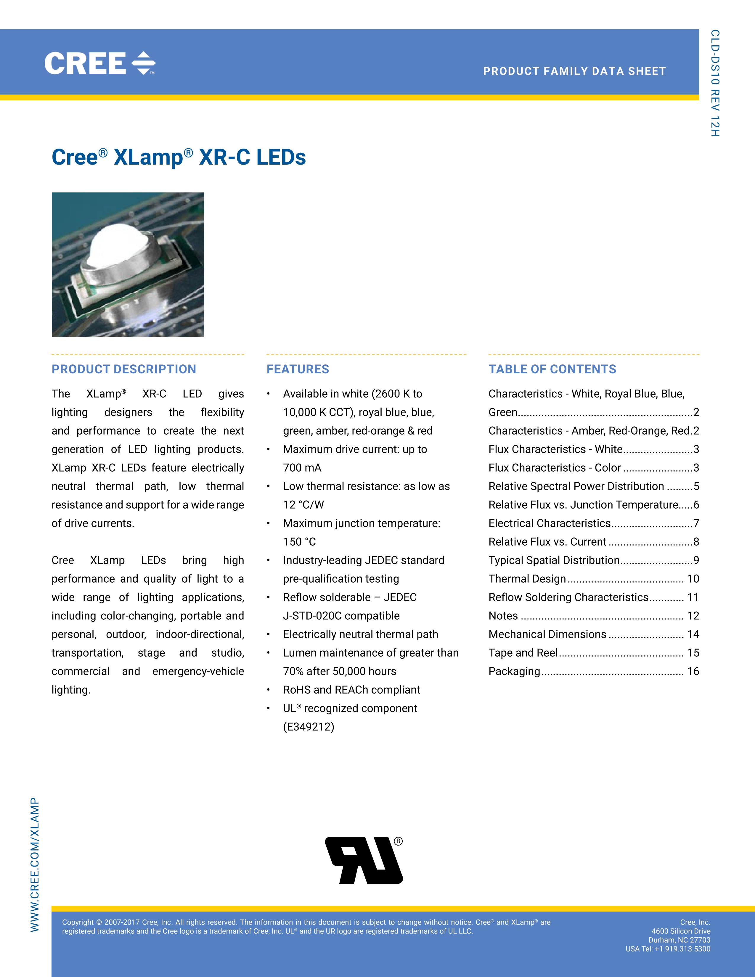 XRCWHT-L1-R250-00901数据手册SMD7x9mm封装CREEPDF规格书,中英文下载