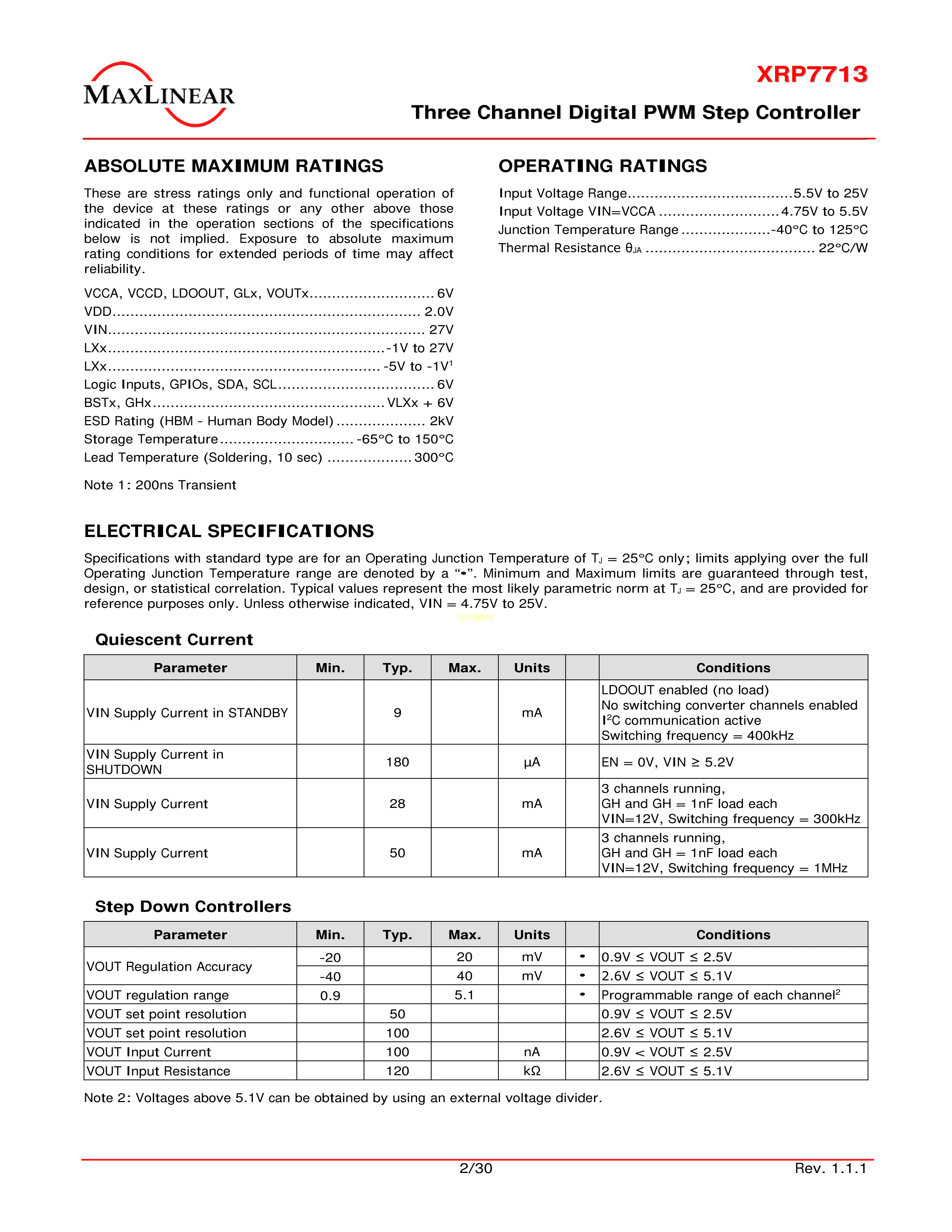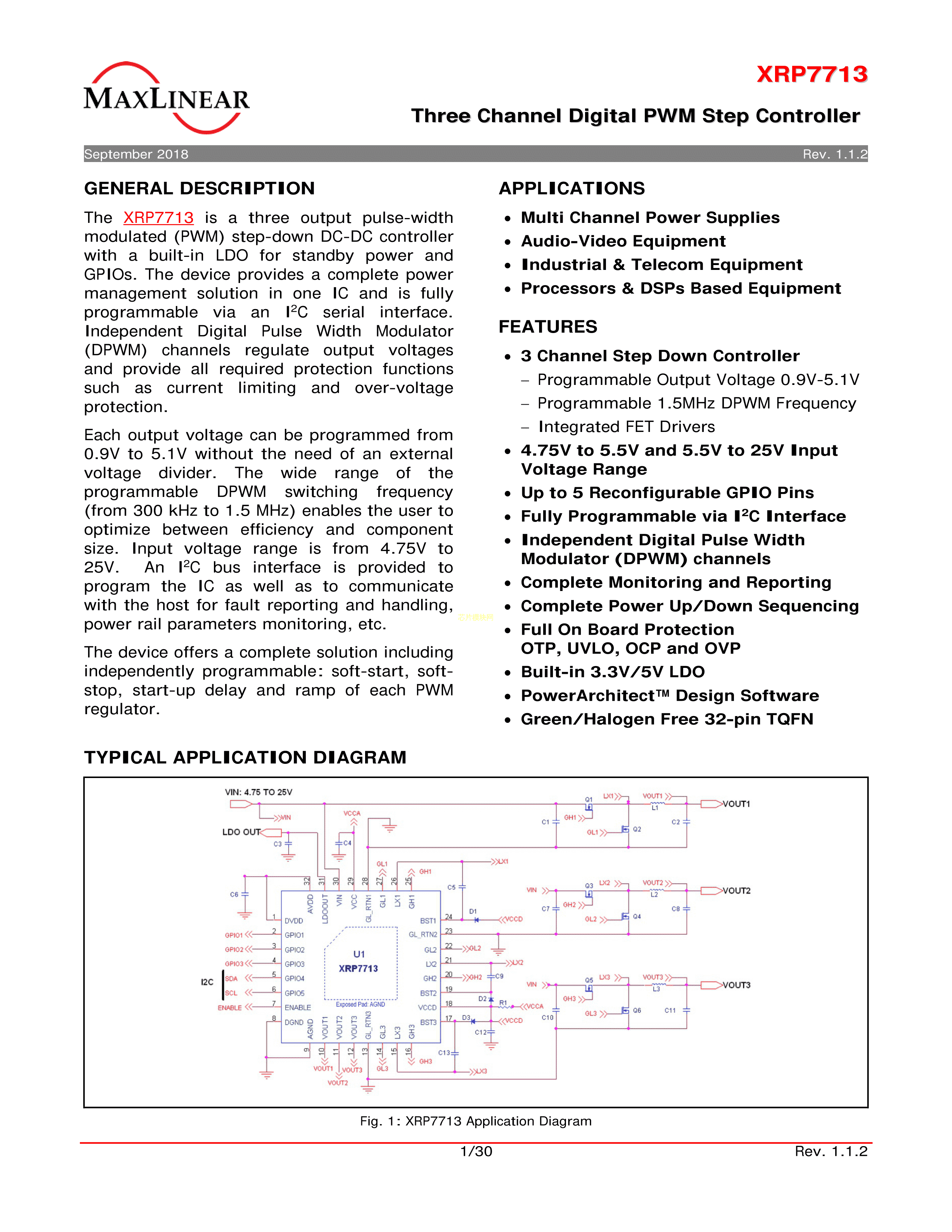 XRP7713ILBTR-F数据手册TQFN-32(5x5)封装MaxLinearPDF规格书,中英文下载