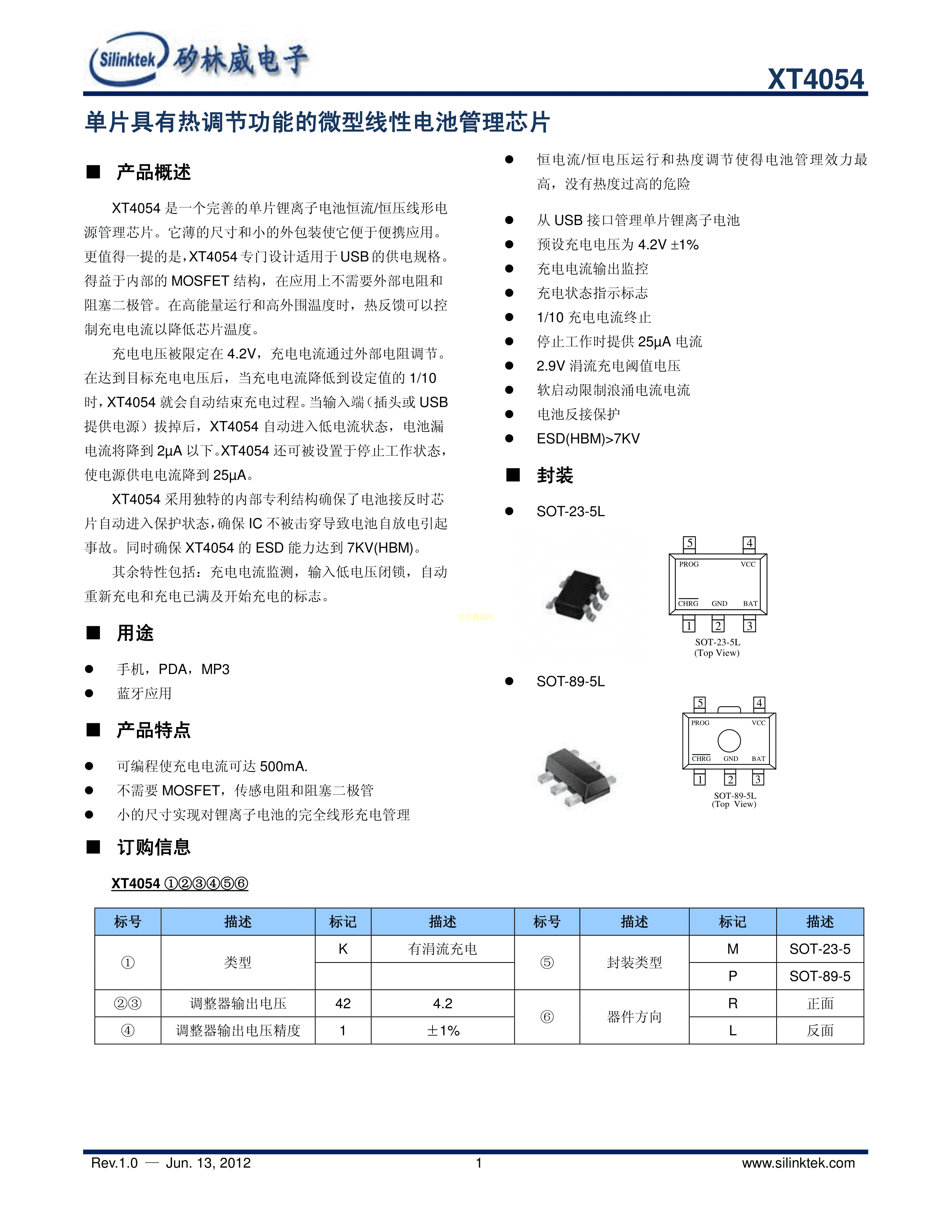 XT4054K421MR-G数据手册SOT-23-5L封装natlinear(南麟)PDF规格书,中