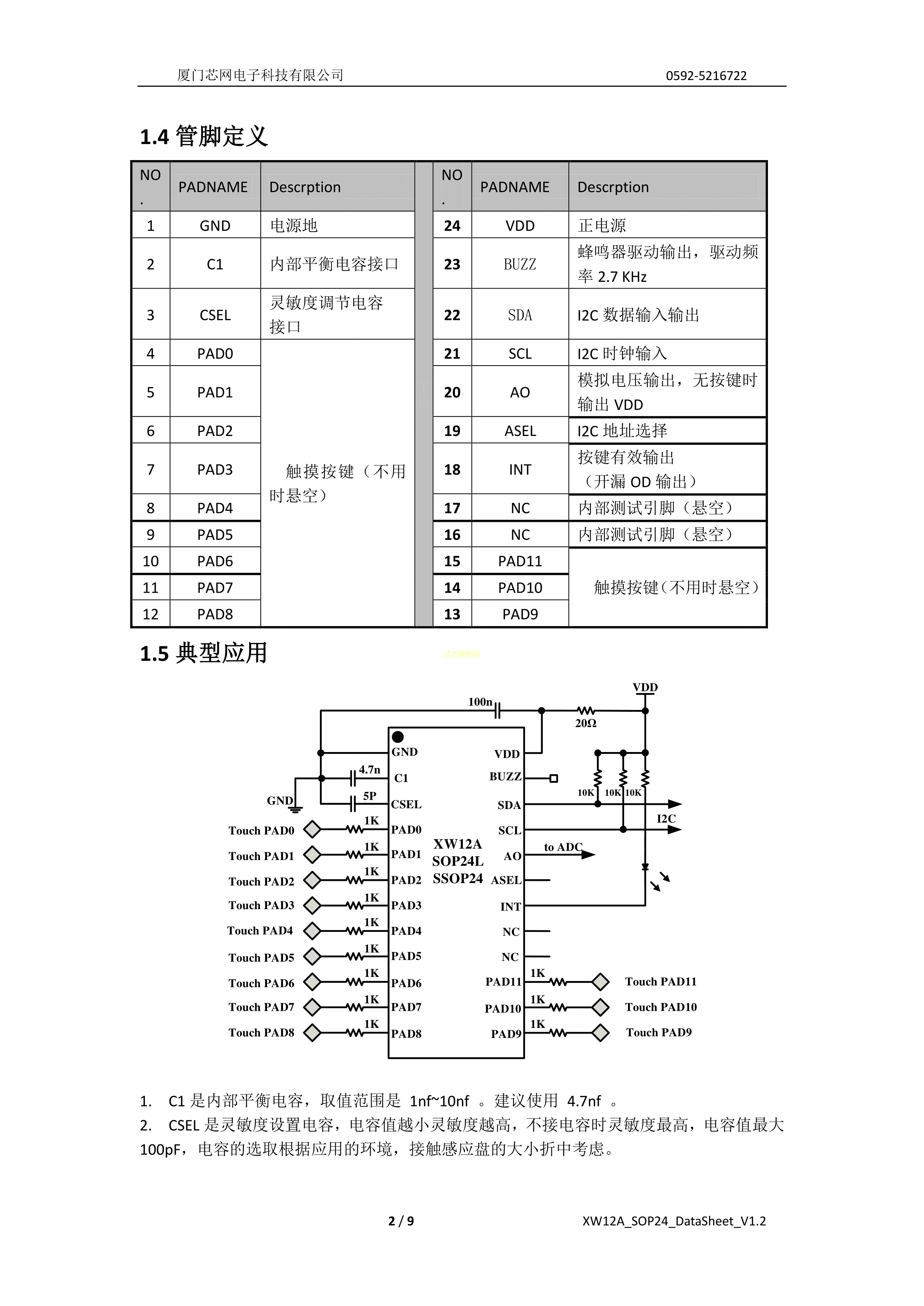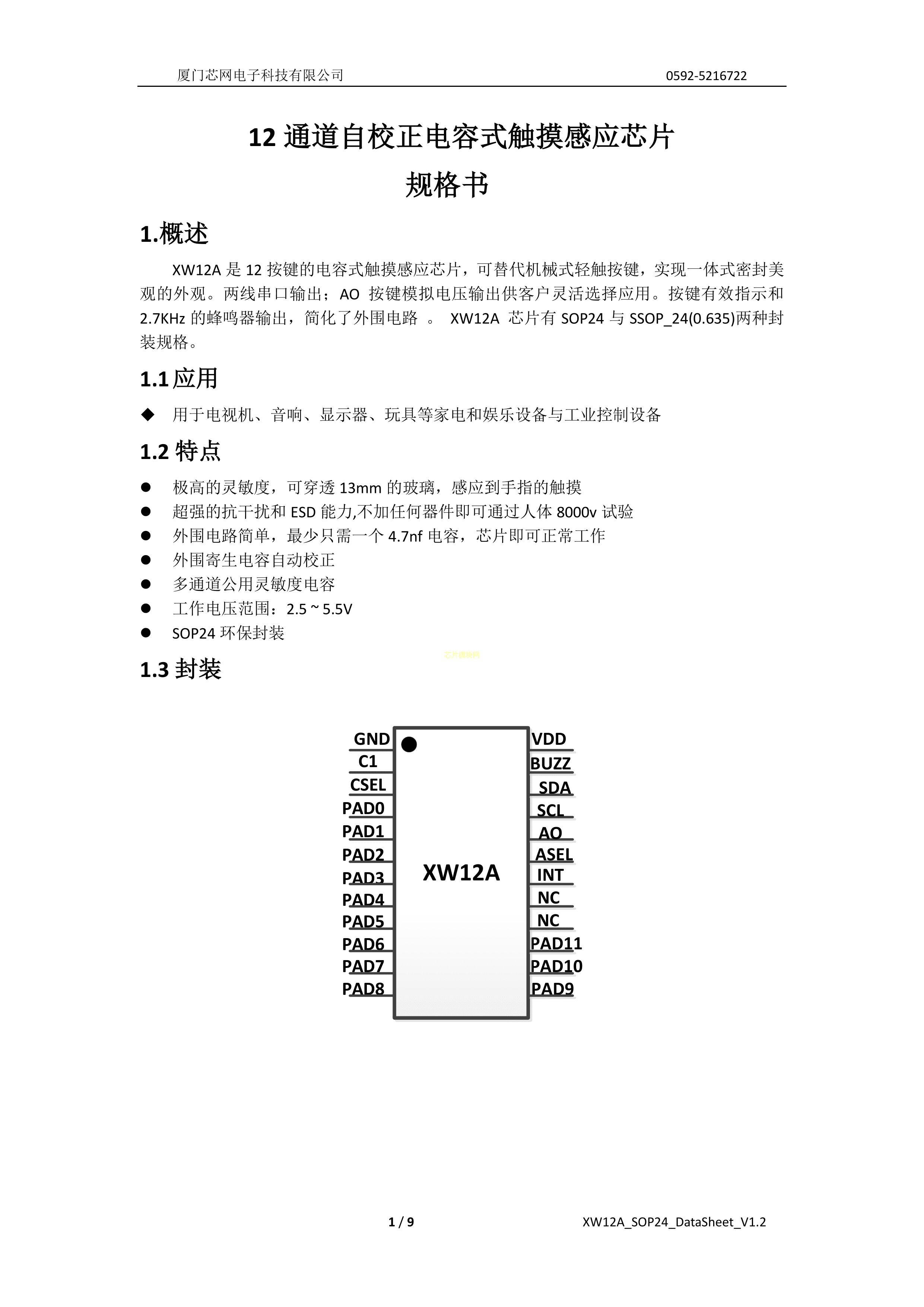 XW12A数据手册SSOP-24封装Samwing(芯网)PDF规格书,中英文下载