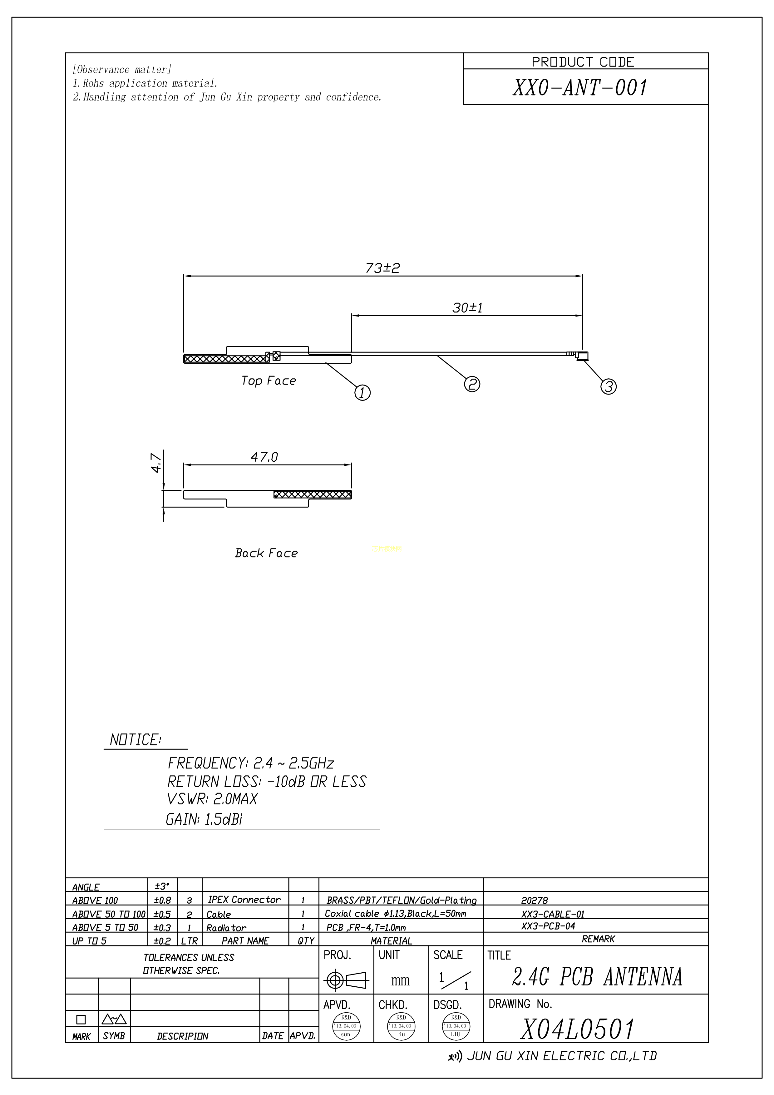 XX0-ANT-172数据手册40x9.9mm封装99IOT(九九物联)PDF规格书,中英文下载