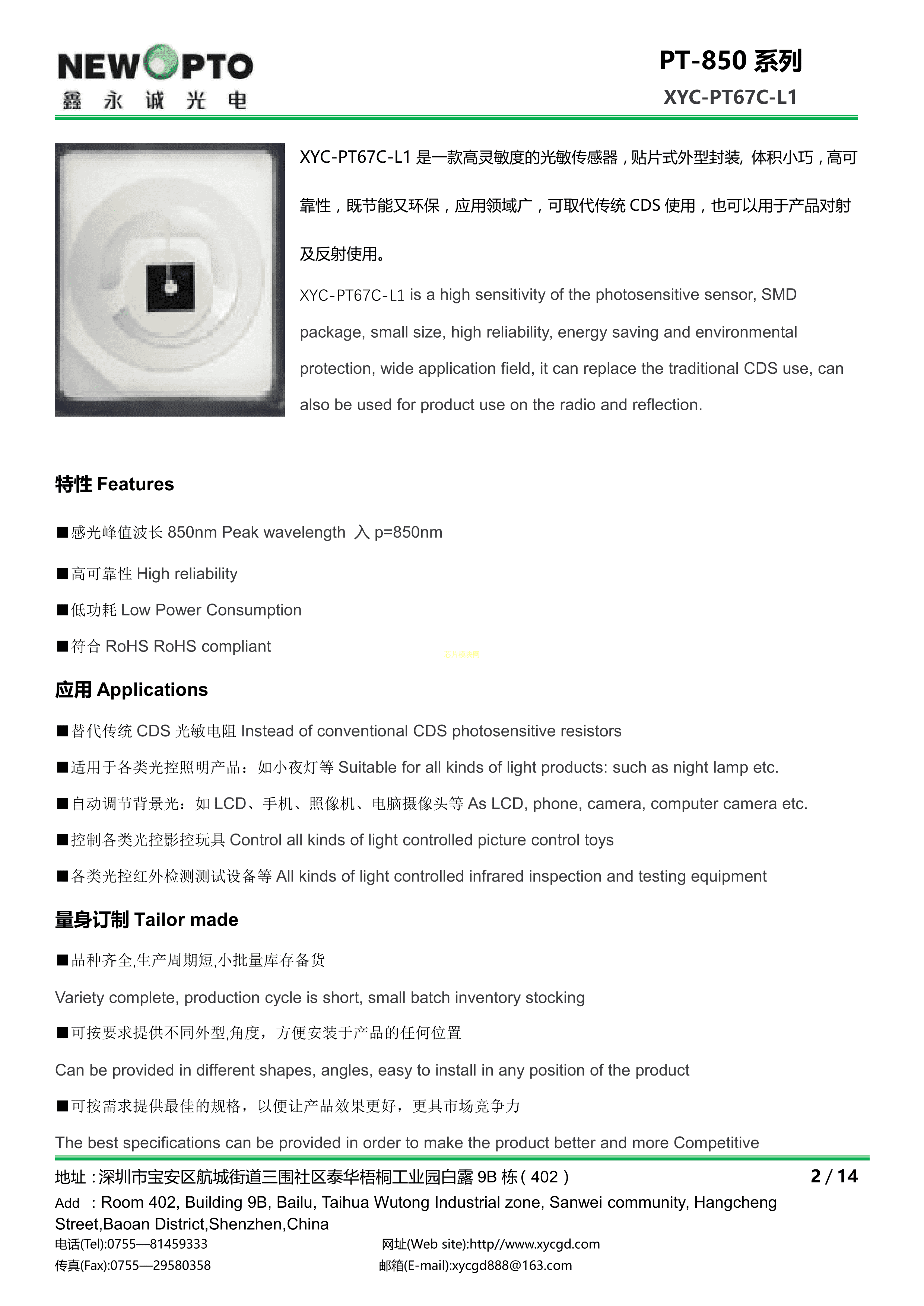 XYC-PT67C-L1数据手册SMD3.5x2.8x1.9mm封装NEWOPTO(鑫永诚光电)PDF规格书,中英文下载