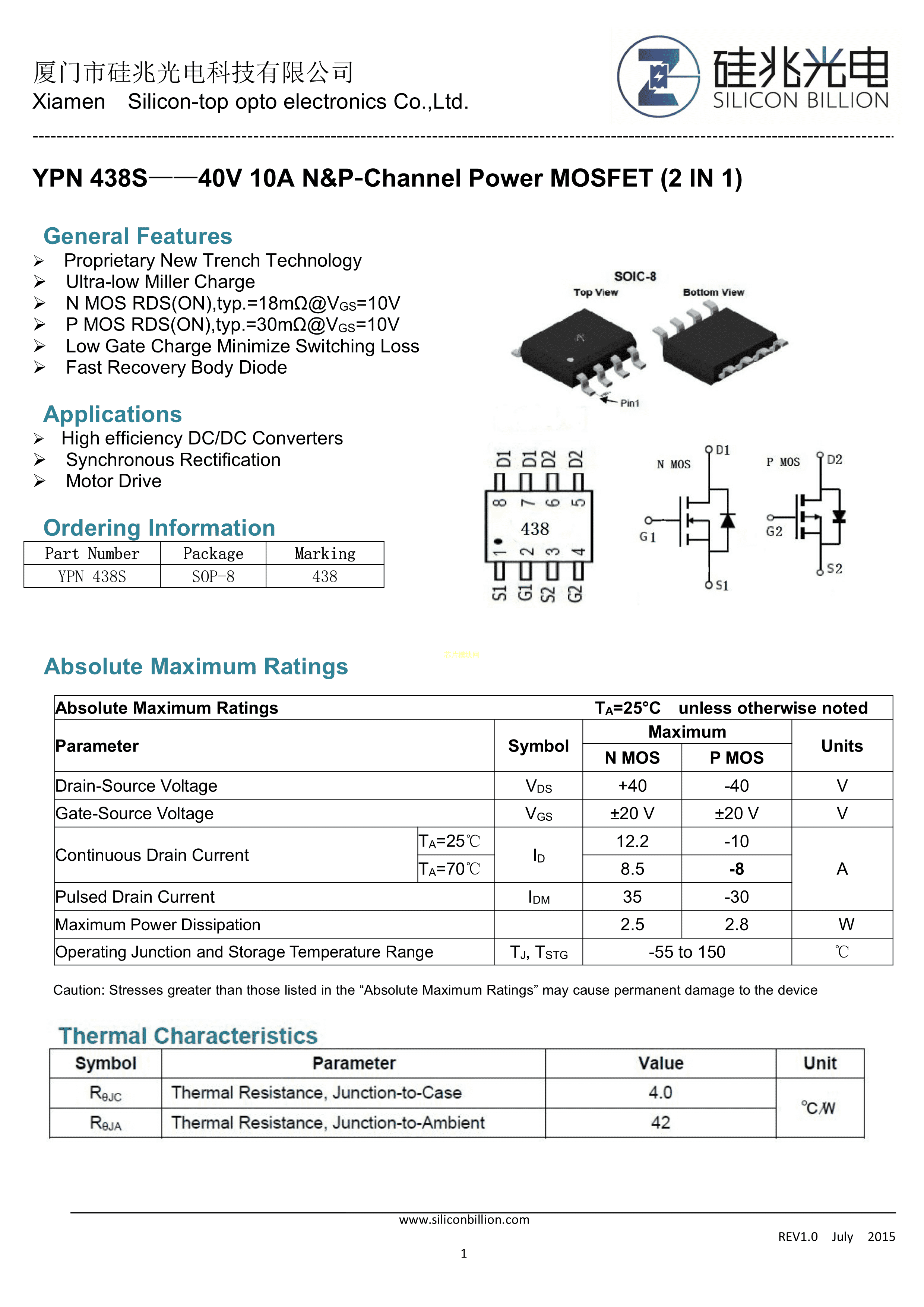 YPN438S数据手册SOP-8封装SiliconBillion(硅兆)PDF规格书,中英文下载