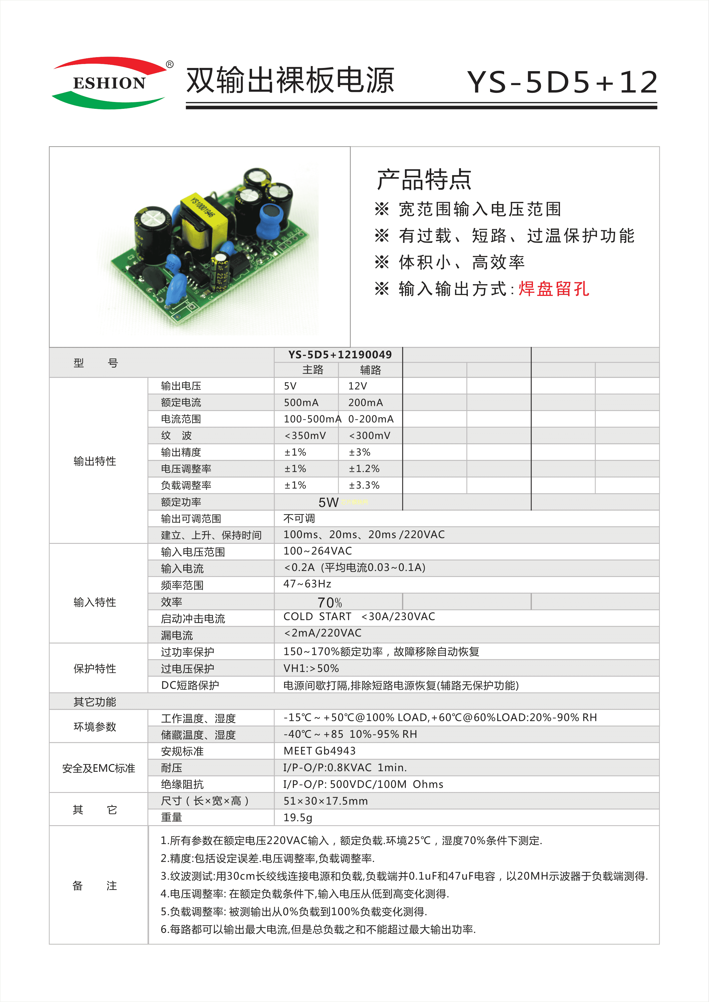 YS-5D5+12190049数据手册-封装ESHION(禹舜)PDF规格书,中英文下载