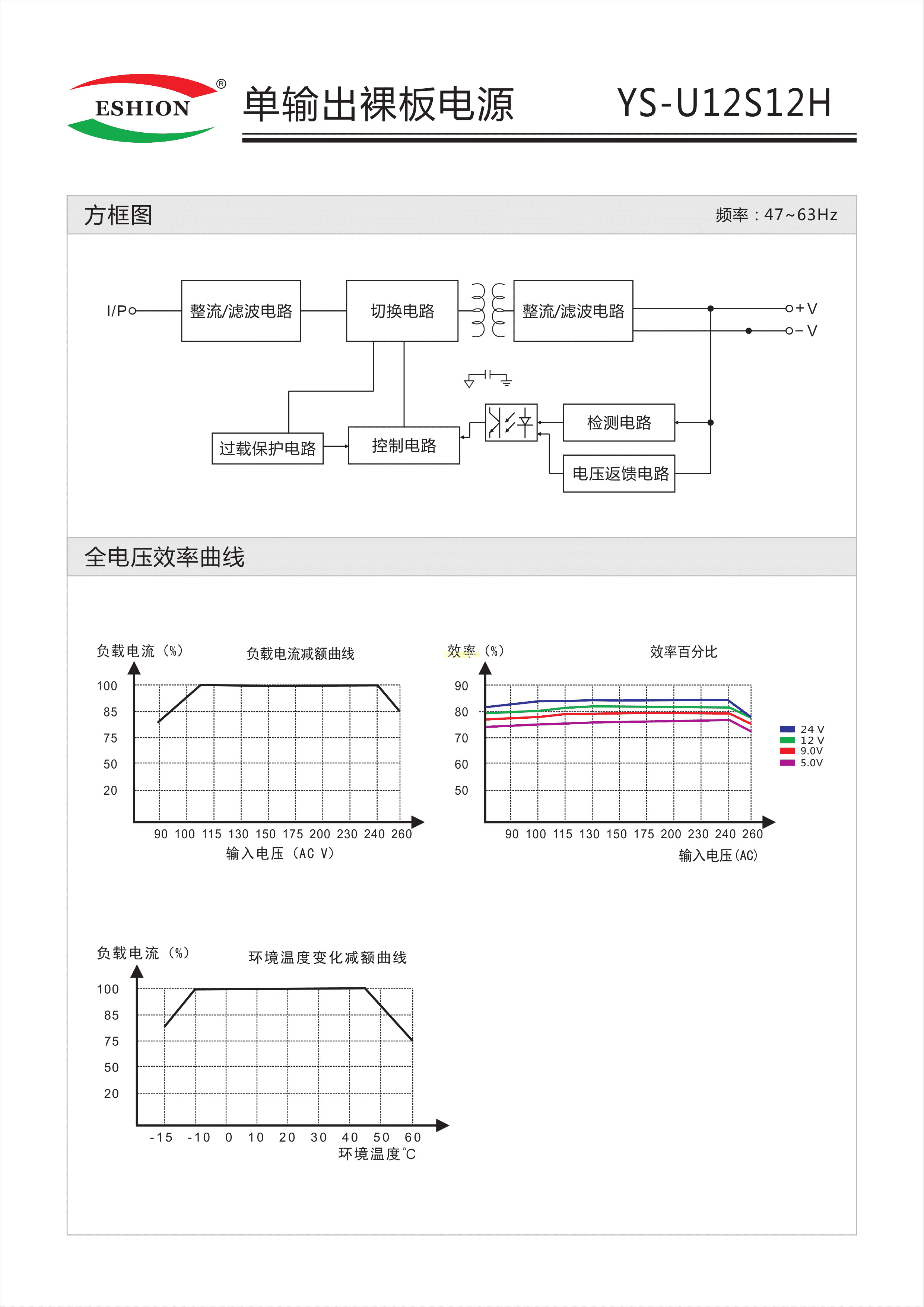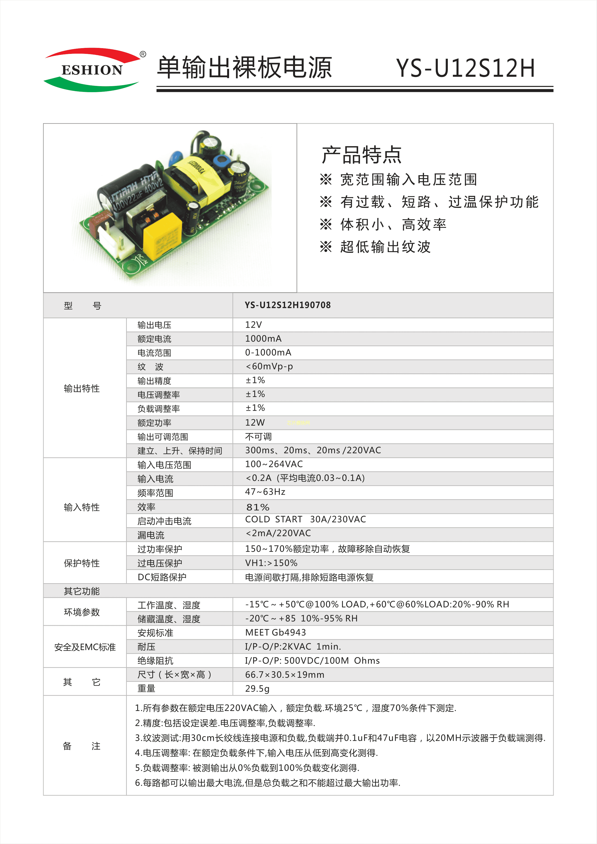 YS-U12S12H190708数据手册-封装ESHION(禹舜)PDF规格书,中英文下载