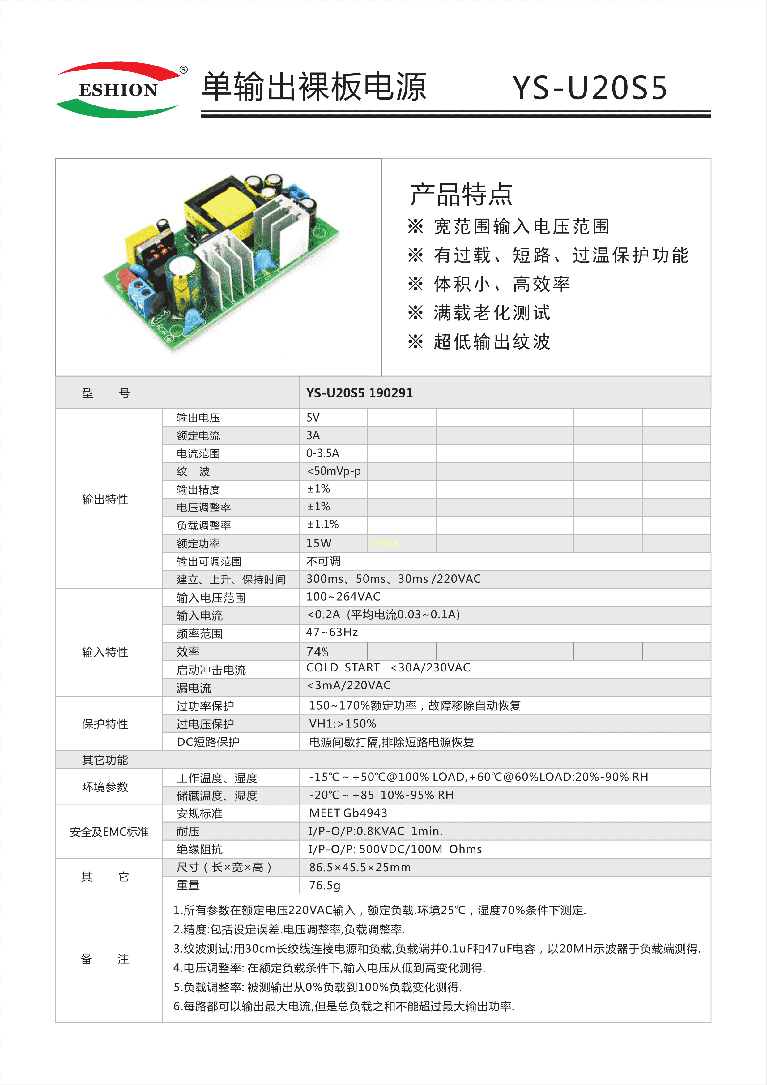 YS-U20S5190291数据手册-封装ESHION(禹舜)PDF规格书,中英文下载