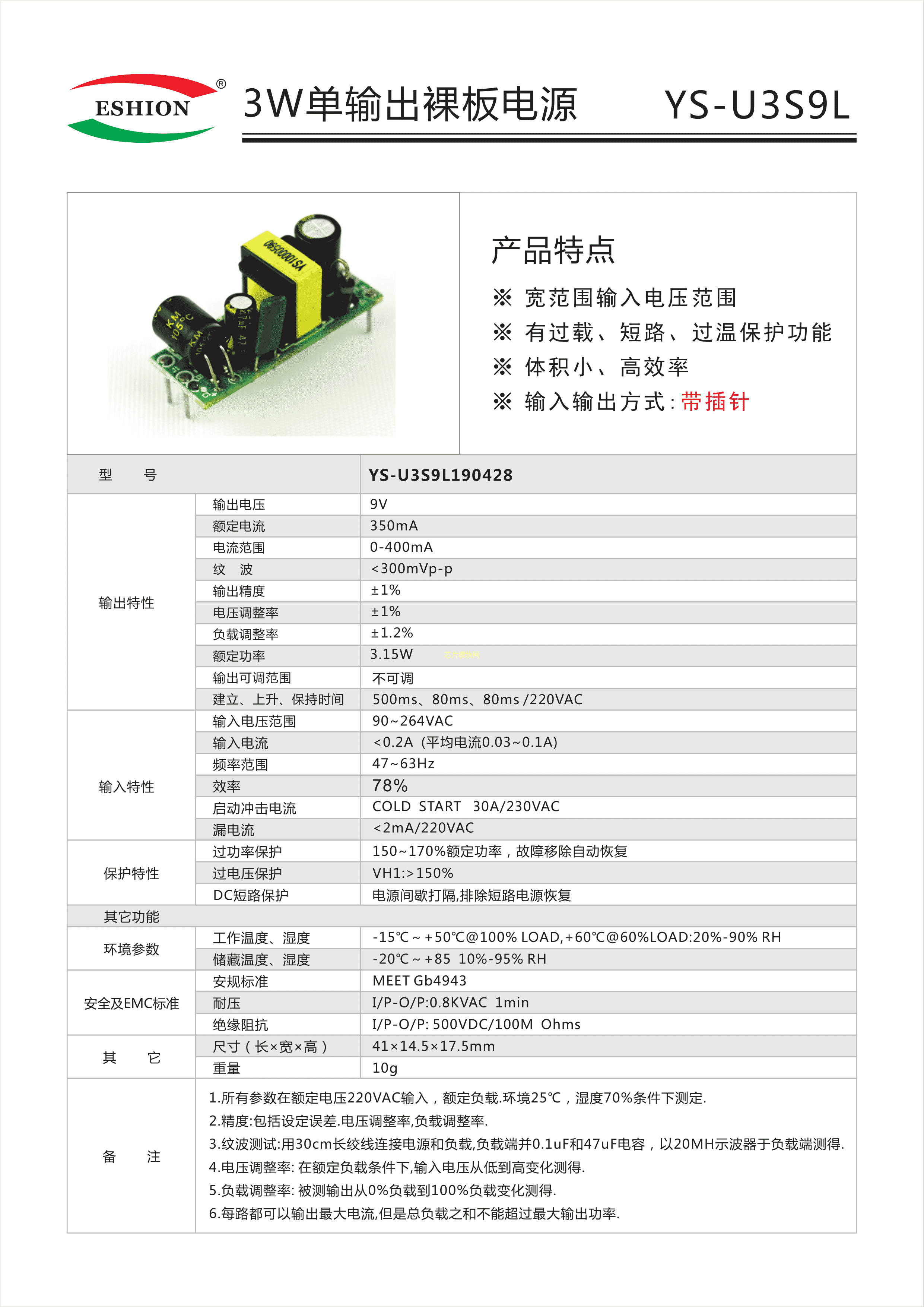 YS-U3S9L 190428数据手册-封装ESHION(禹舜)PDF规格书,中英文下载