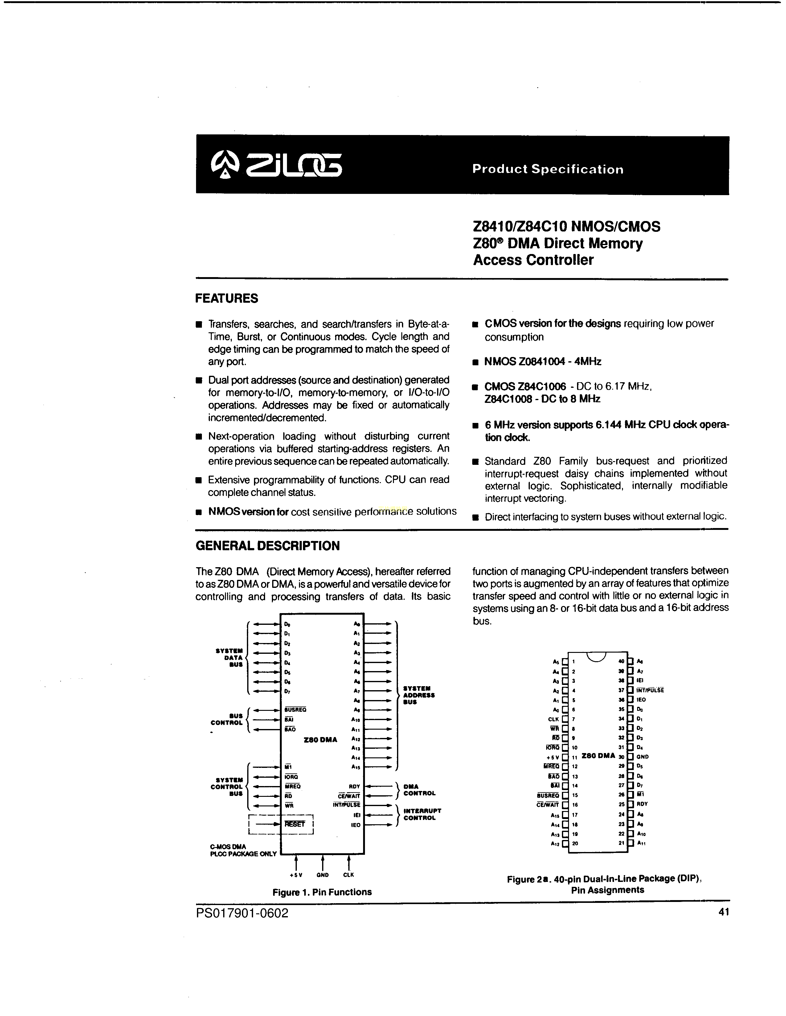Z84C1008PEG数据手册DIP-40封装ZilogPDF规格书,中英文下载
