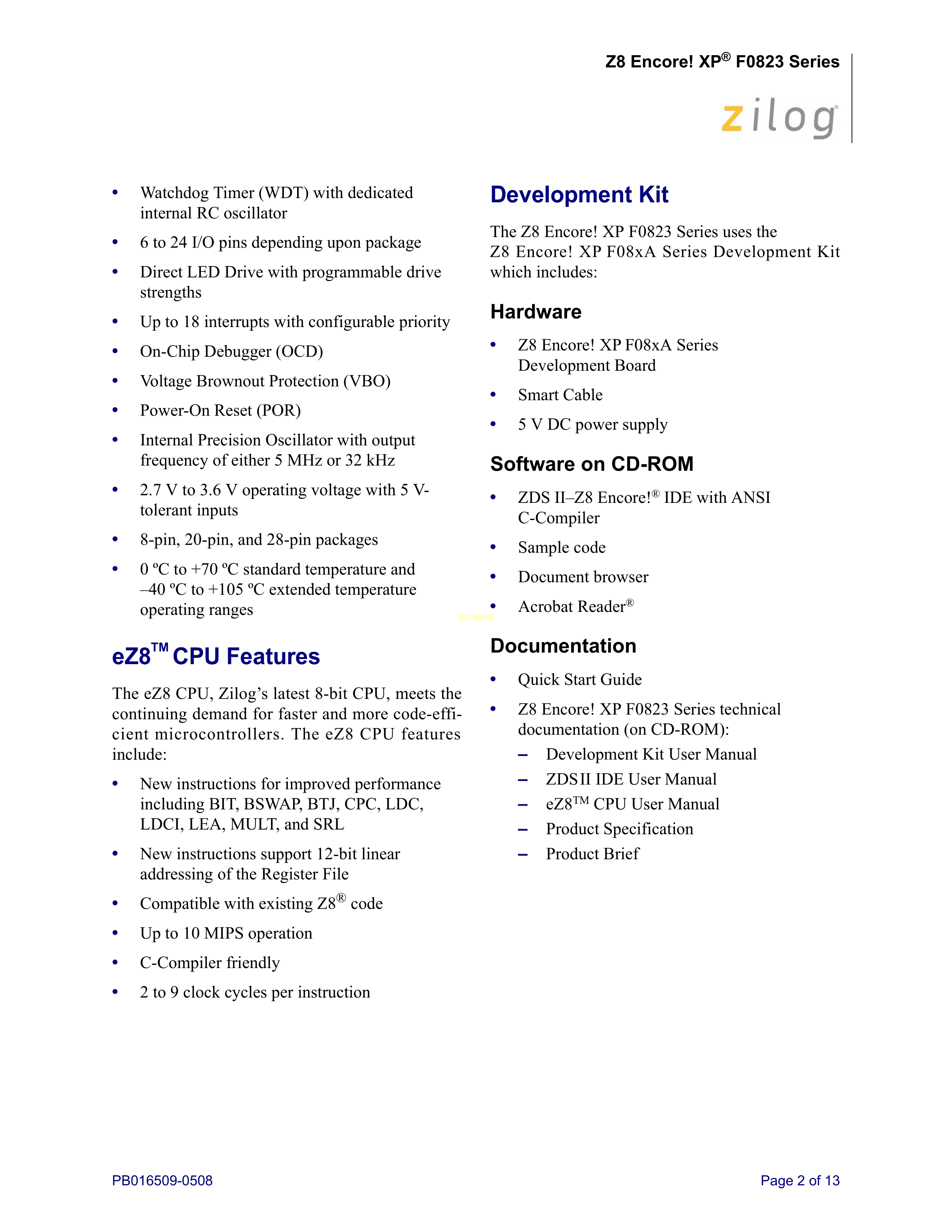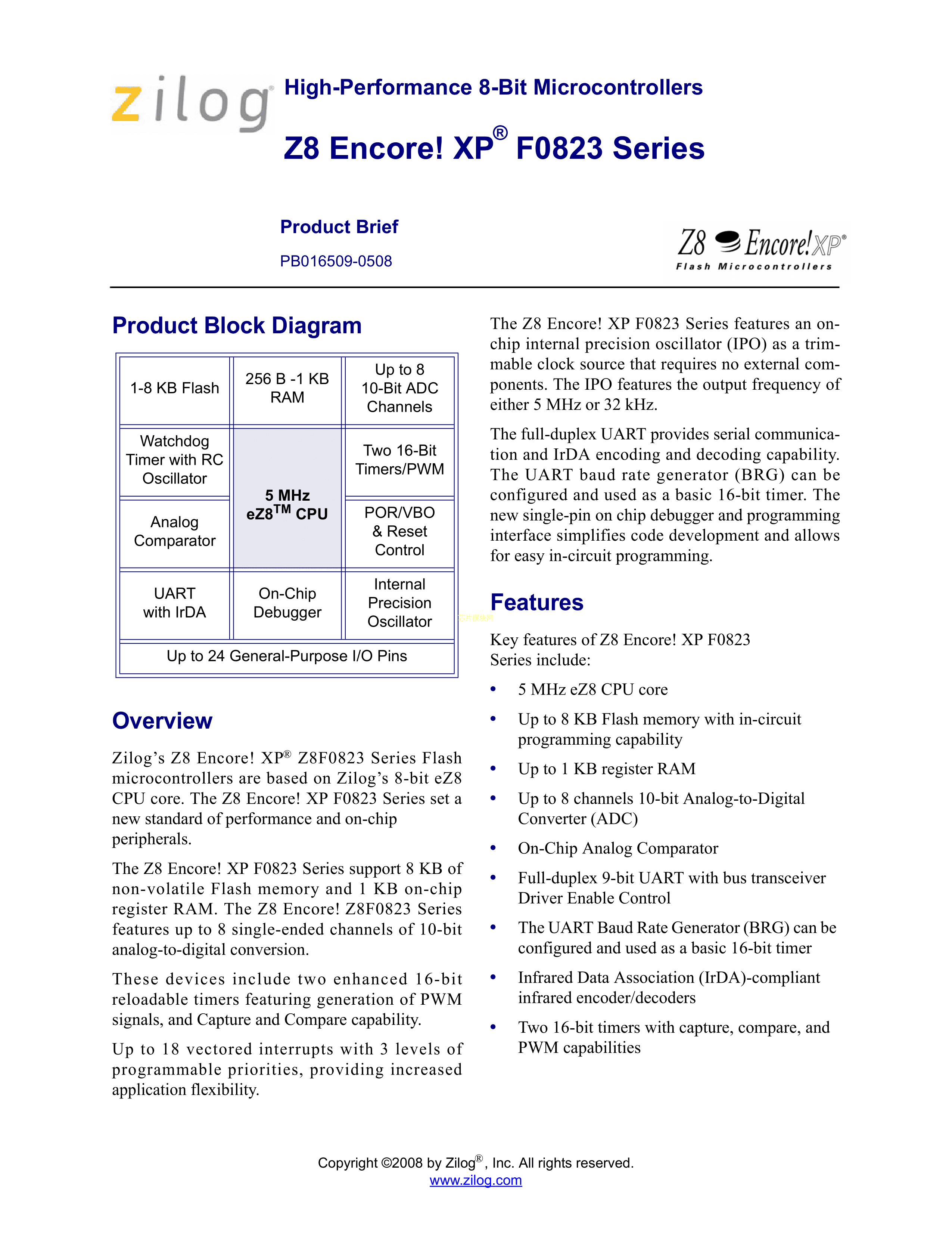 Z8F0123SJ005SG2156数据手册SOIC-28封装ZilogPDF规格书,中英文下载