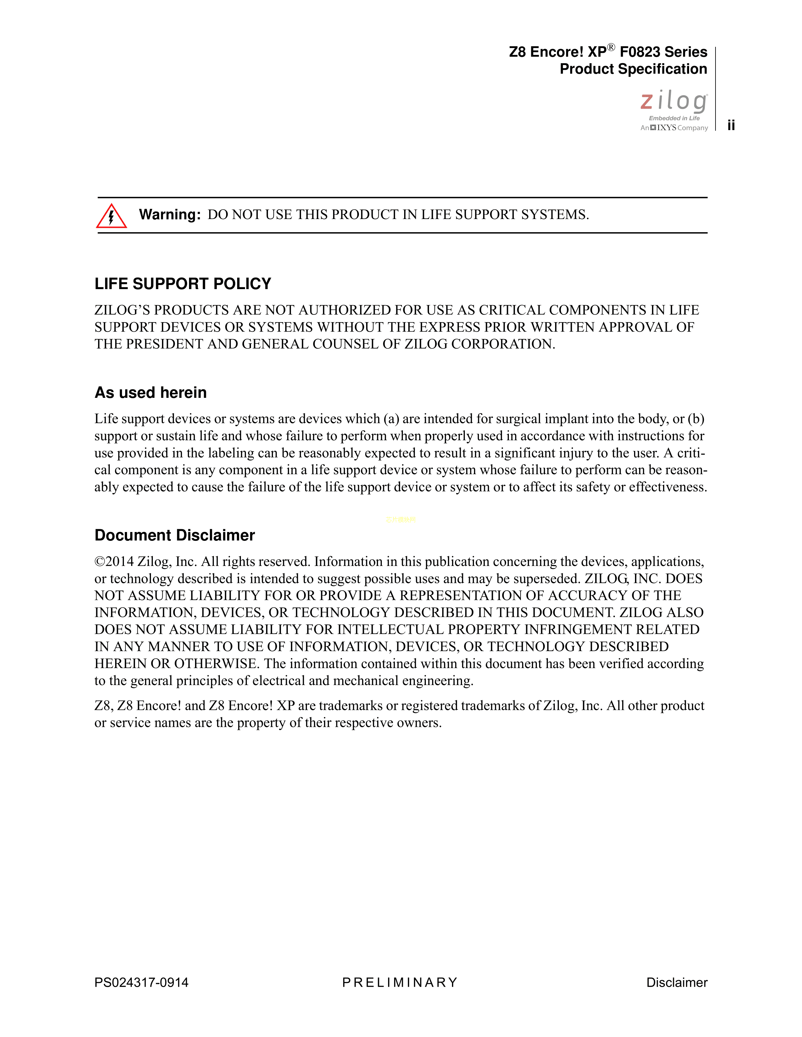 Z8F0413PH005EG数据手册DIP-20封装ZilogPDF规格书,中英文下载