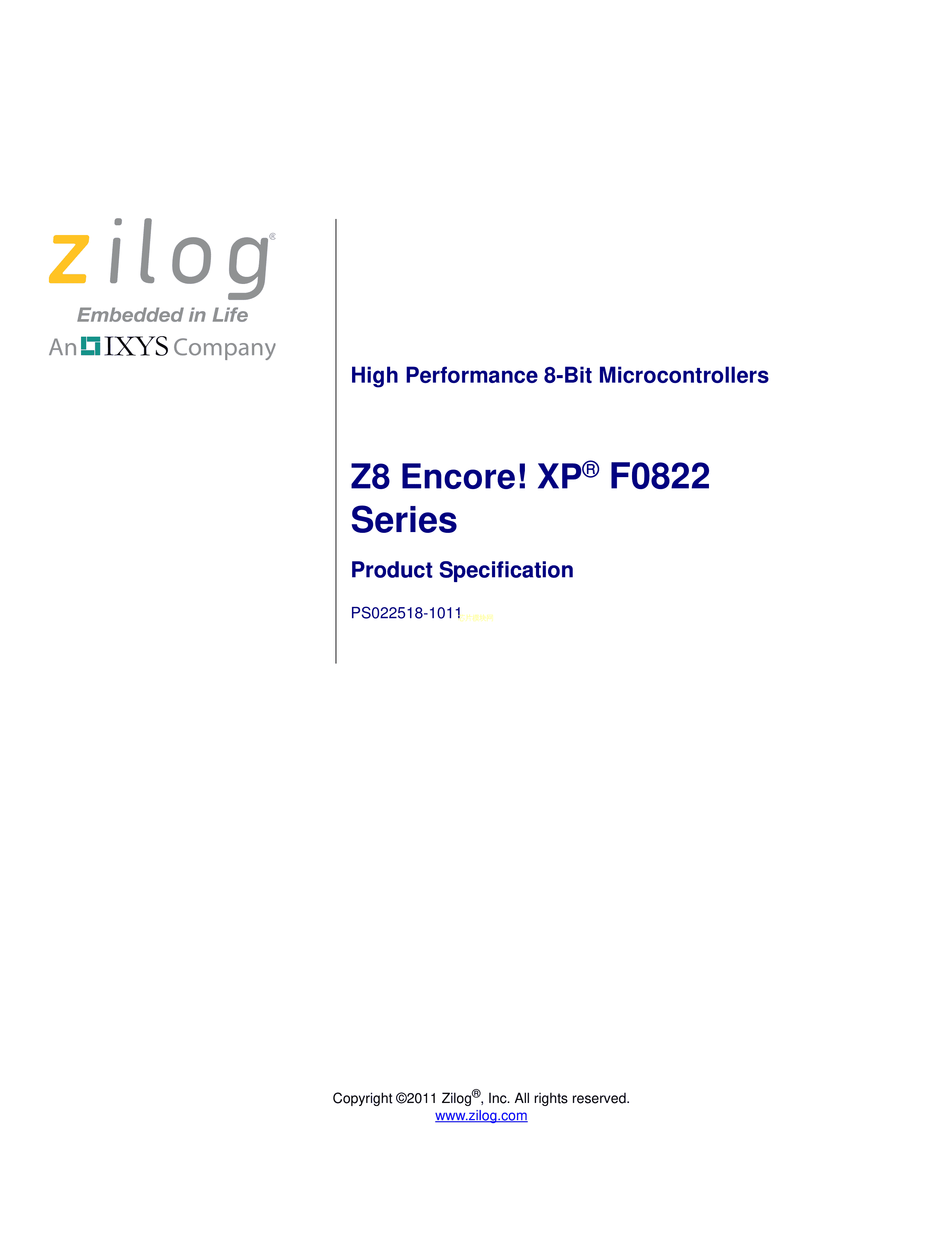 Z8F0421HH020SG数据手册SSOP-20封装ZilogPDF规格书,中英文下载