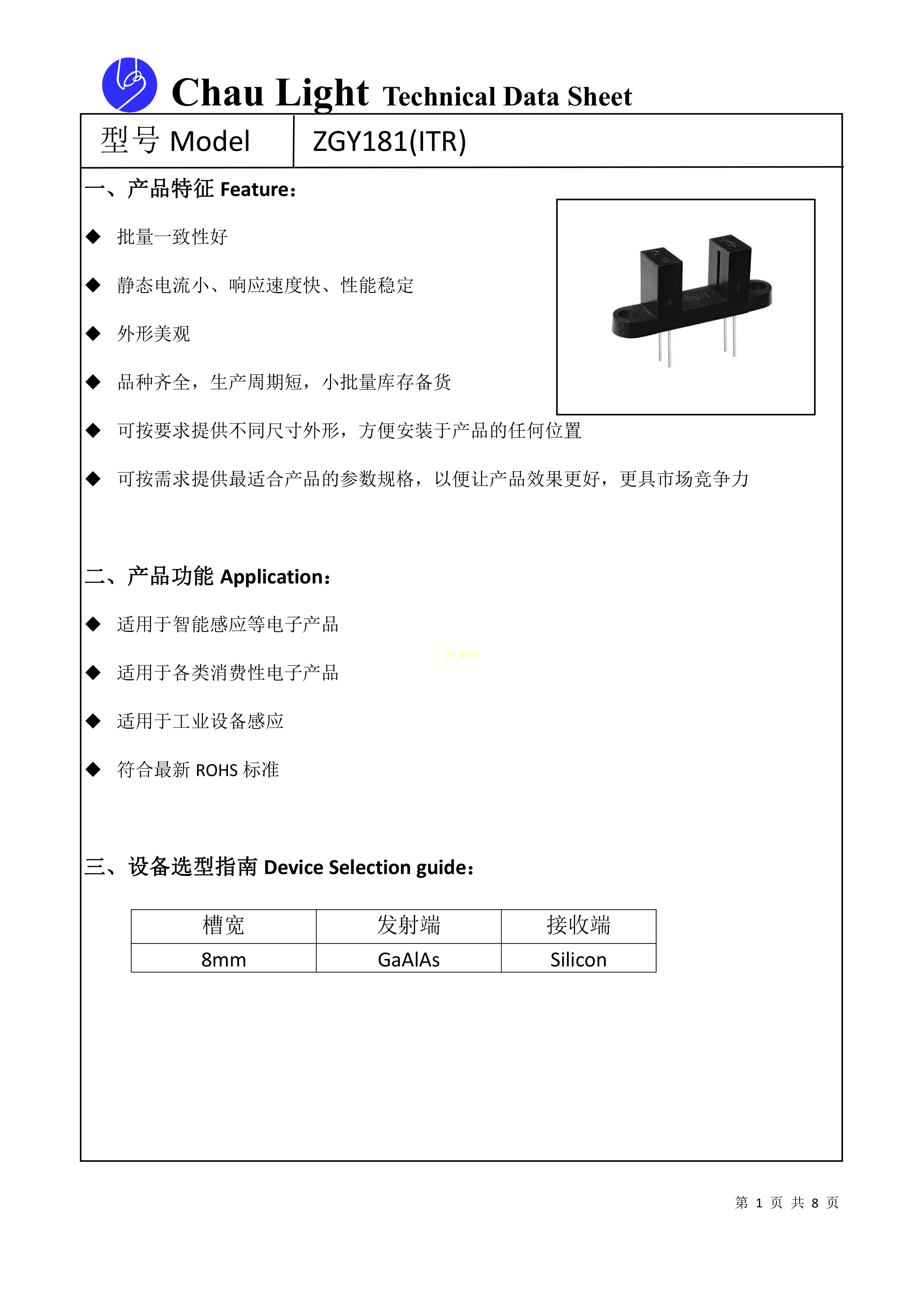 ZGY181(ITR)数据手册ThroughHole封装ChauLight(洲光源)PDF规格书,中英文下载