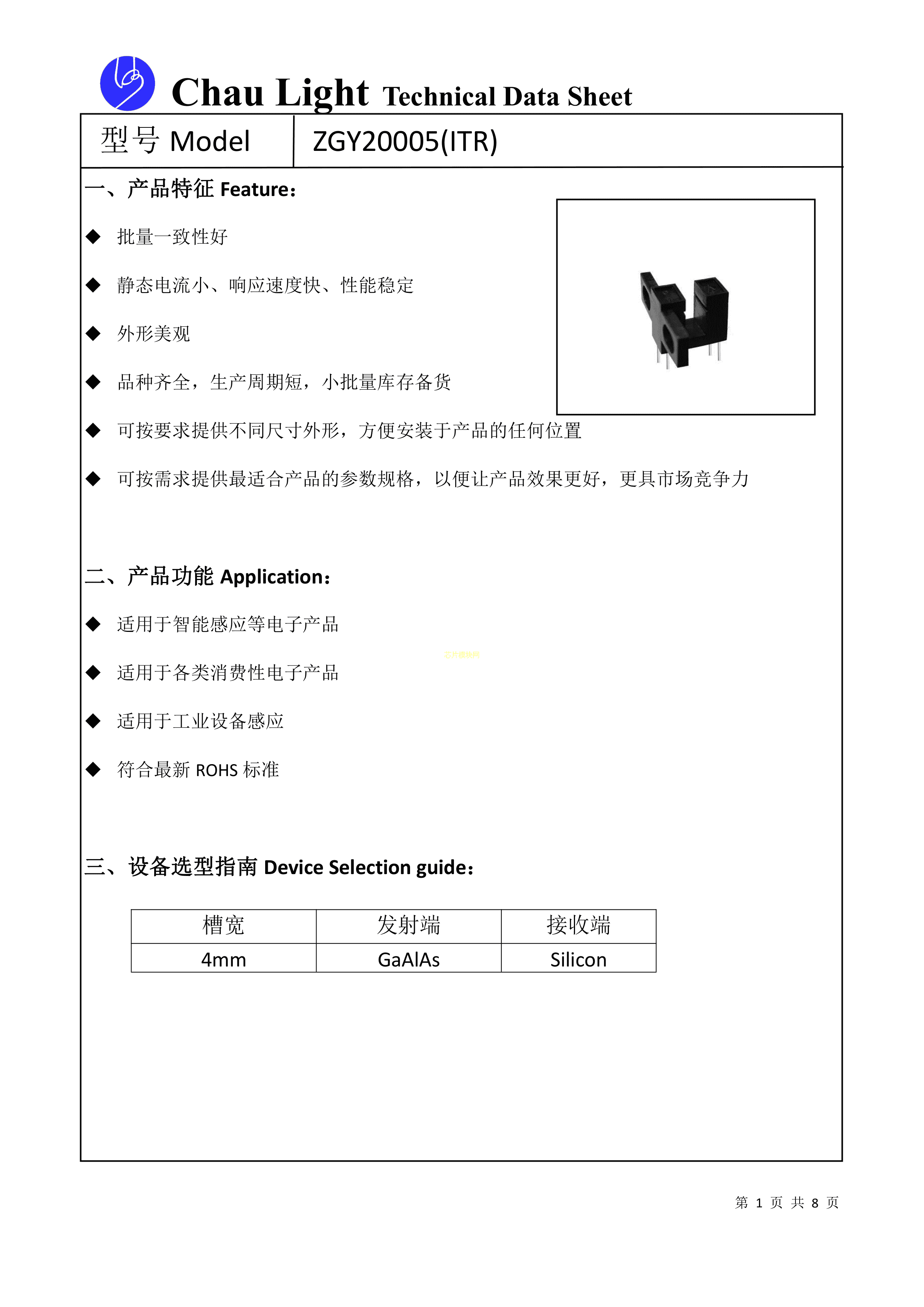 ZGY20005(ITR)数据手册ThroughHole封装ChauLight(洲光源)PDF规格书,中英文下载