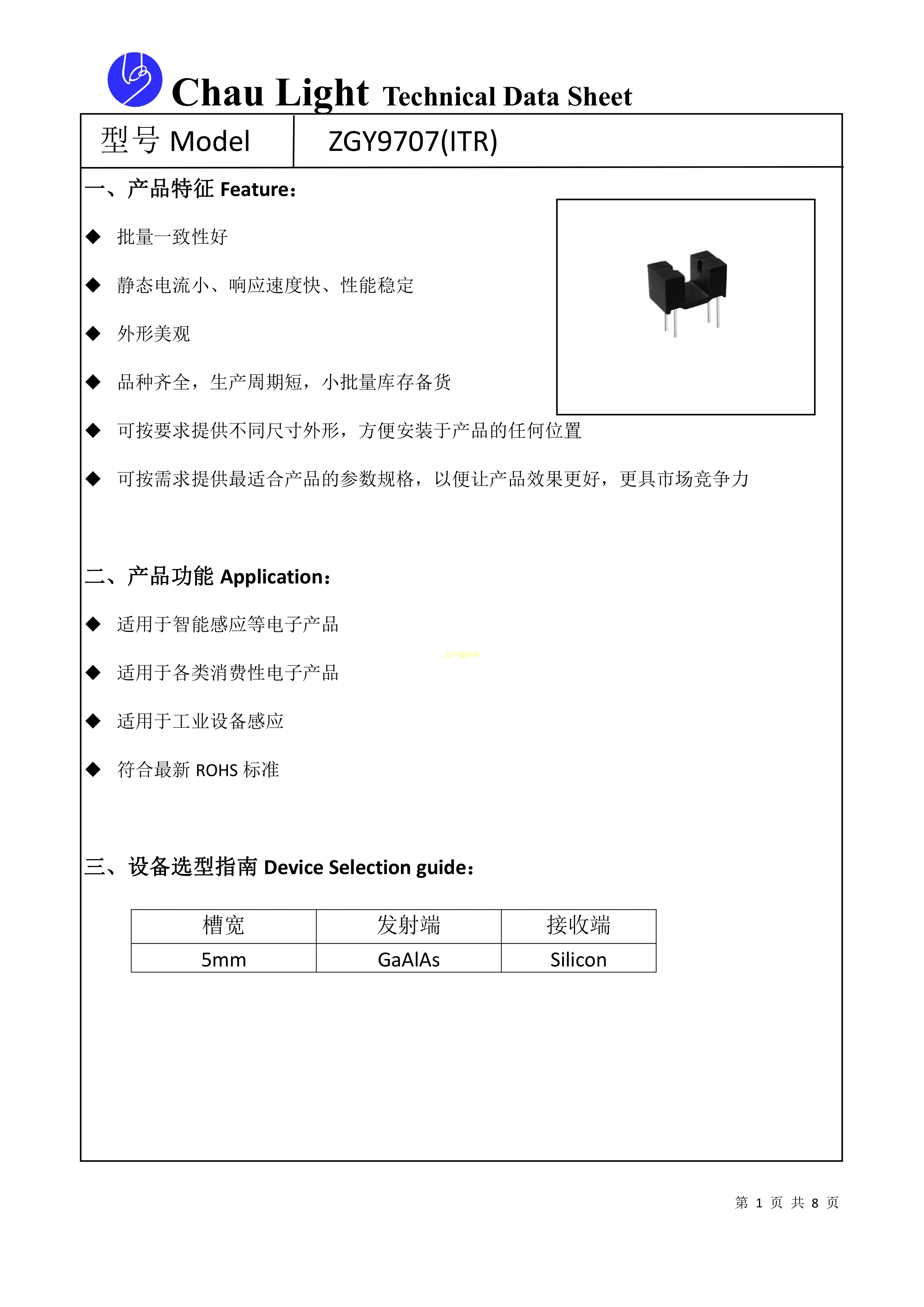 ZGY9707(ITR)数据手册ThroughHole封装ChauLight(洲光源)PDF规格书,中英文下载