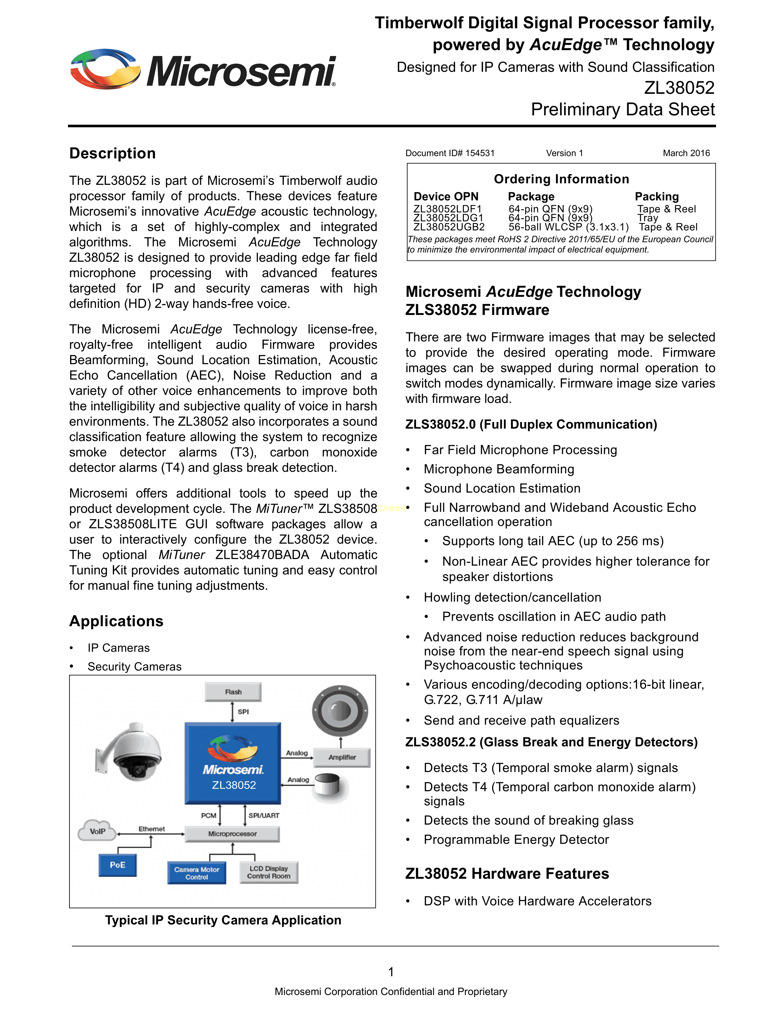 ZL38052LDG1数据手册QFN-64(9x9)封装MICROCHIP(美国微芯)PDF规格书,中英文下载