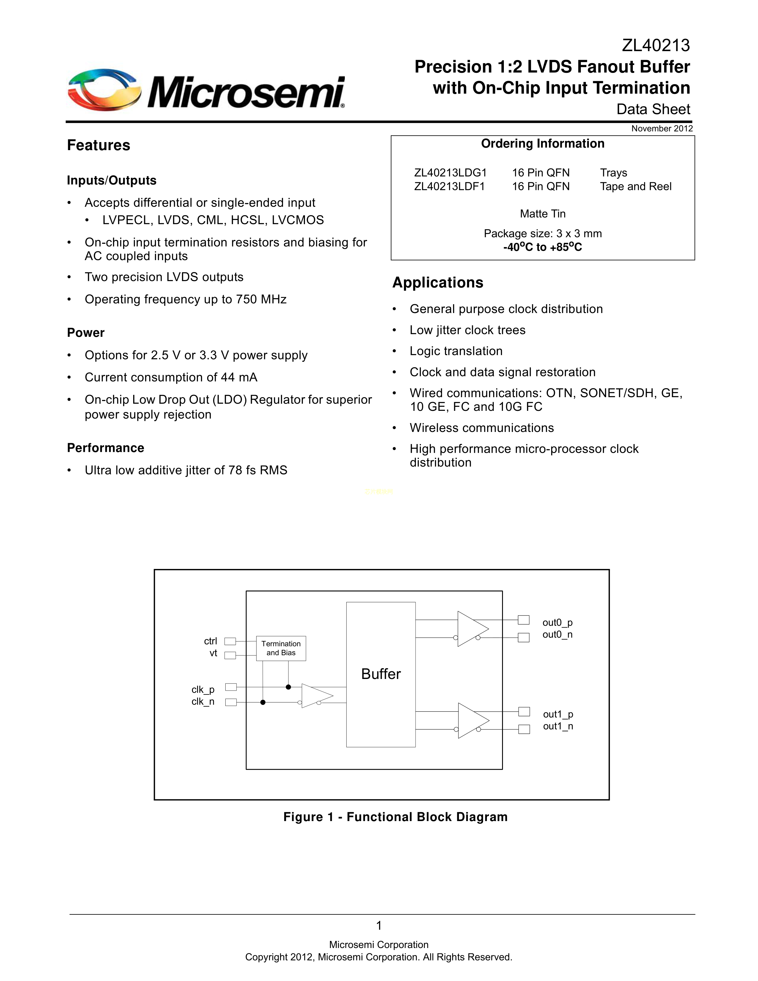 ZL40213LDG1数据手册QFN-16(3x3)封装MICROCHIP(美国微芯)PDF规格书,