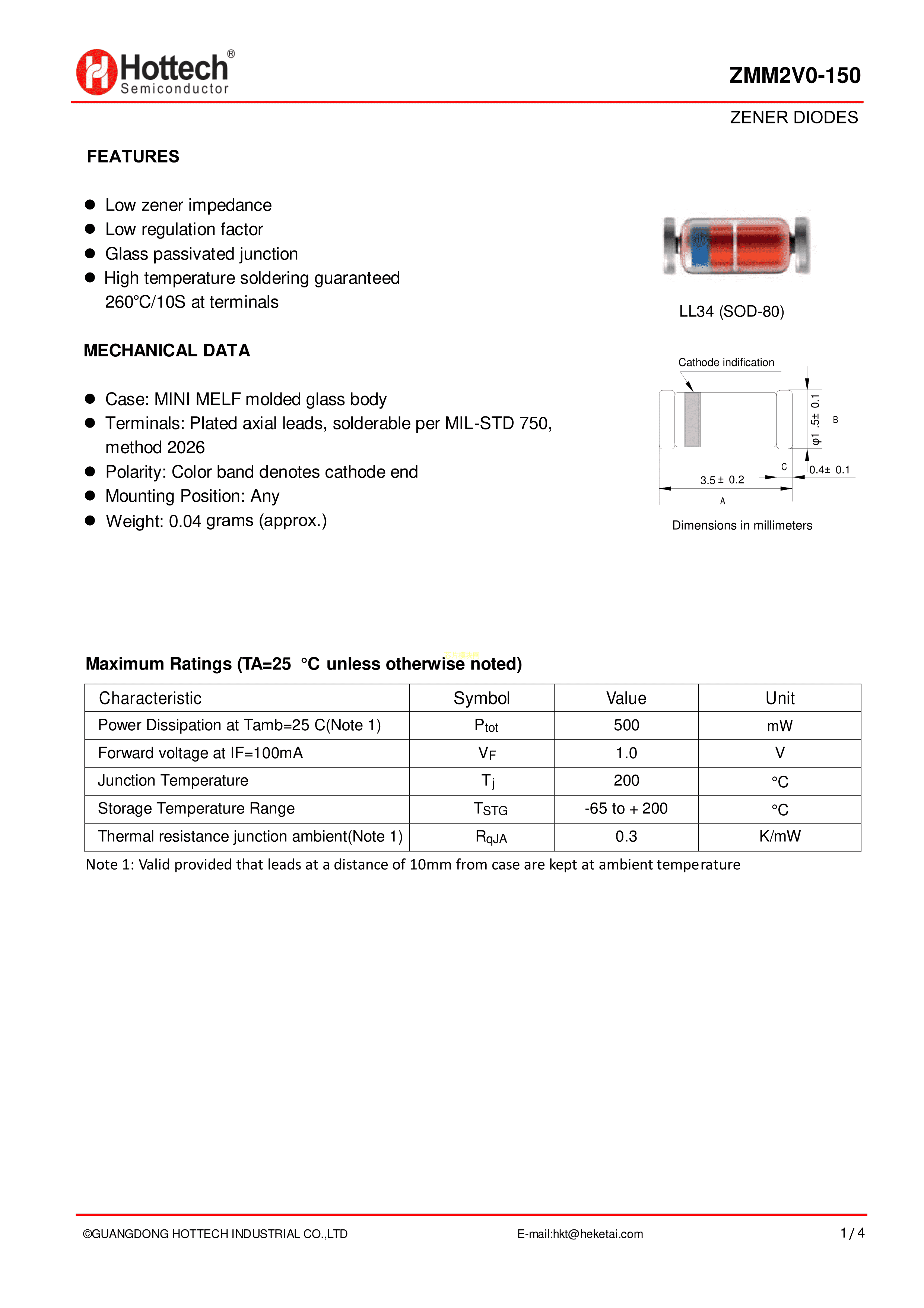 ZMM11数据手册LL-34封装Hottech(合科泰)PDF规格书,中英文下载