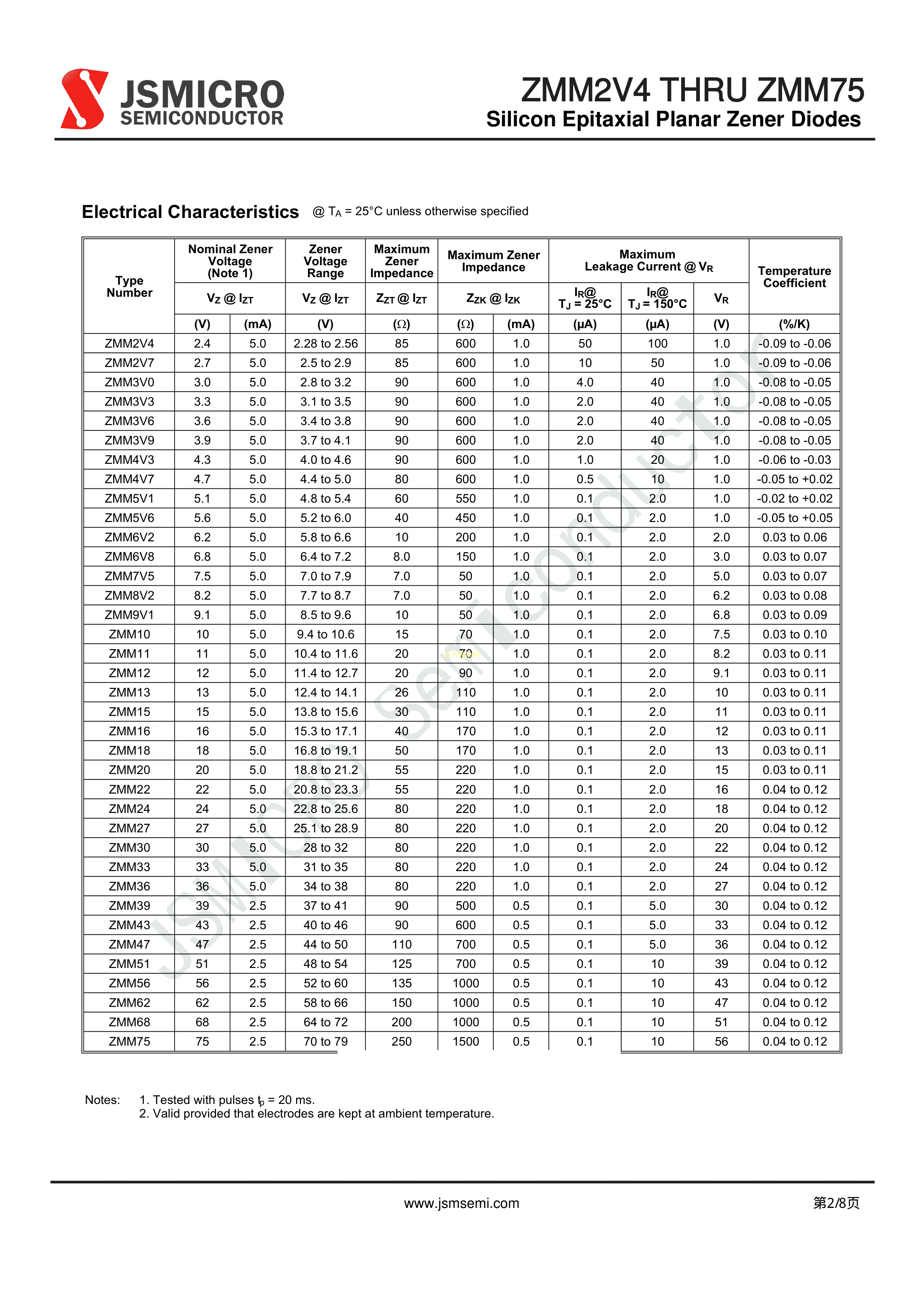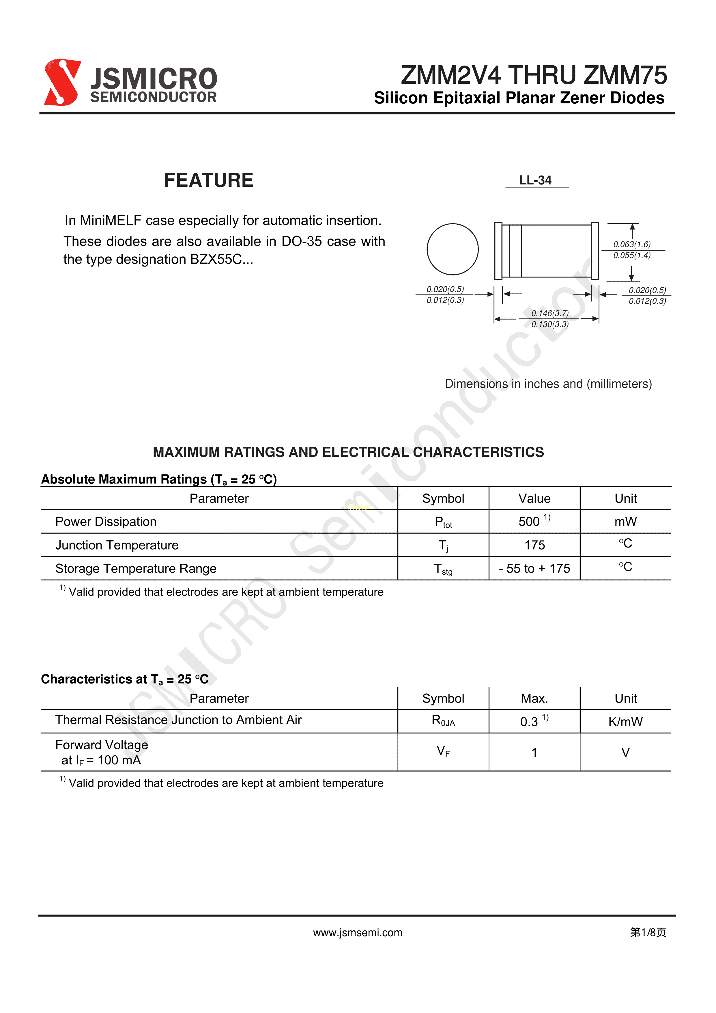 ZMM11数据手册LL-34封装JSMSEMI(杰盛微)PDF规格书,中英文下载
