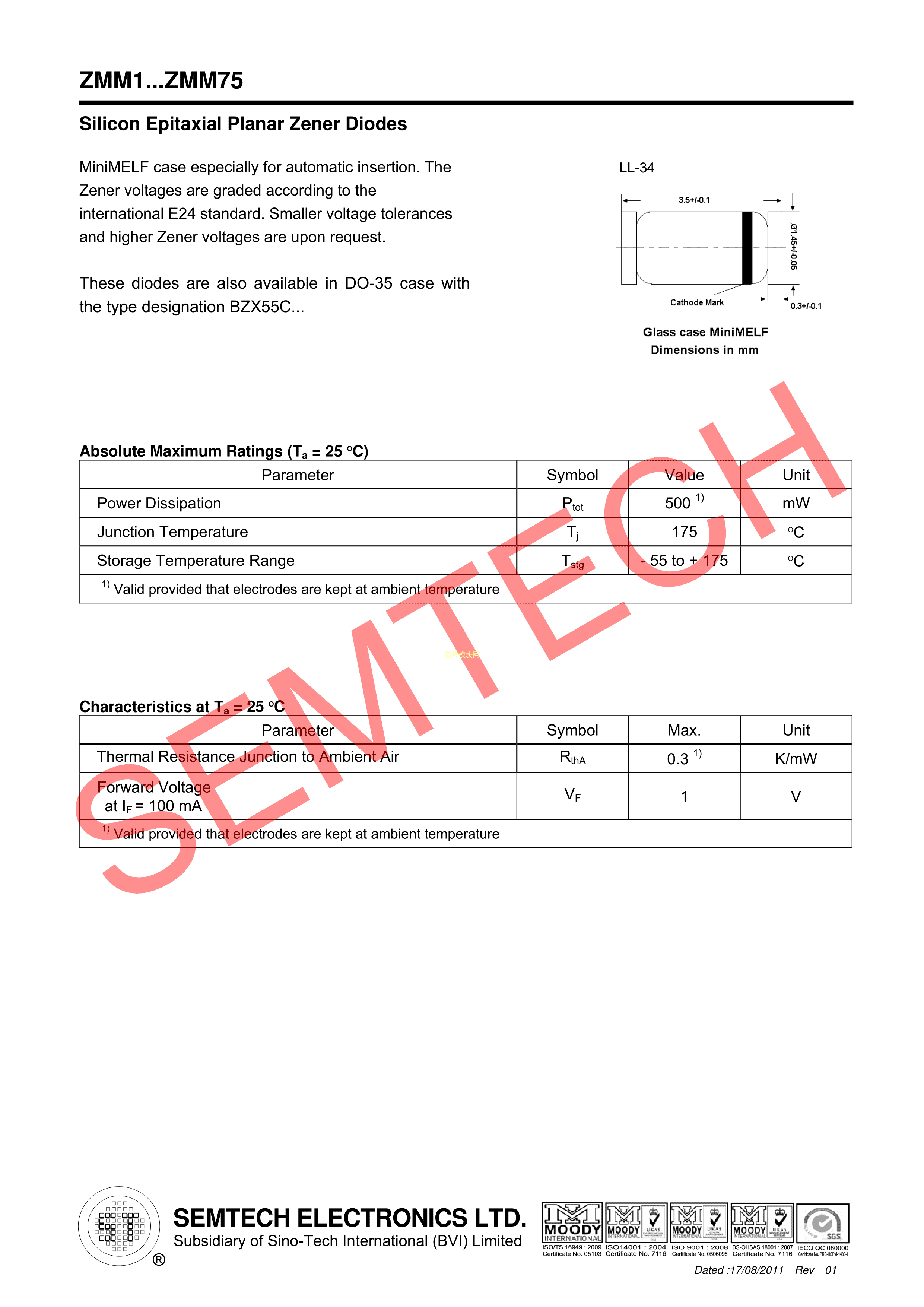 ZMM12V数据手册LL-34封装ST(先科)PDF规格书,中英文下载