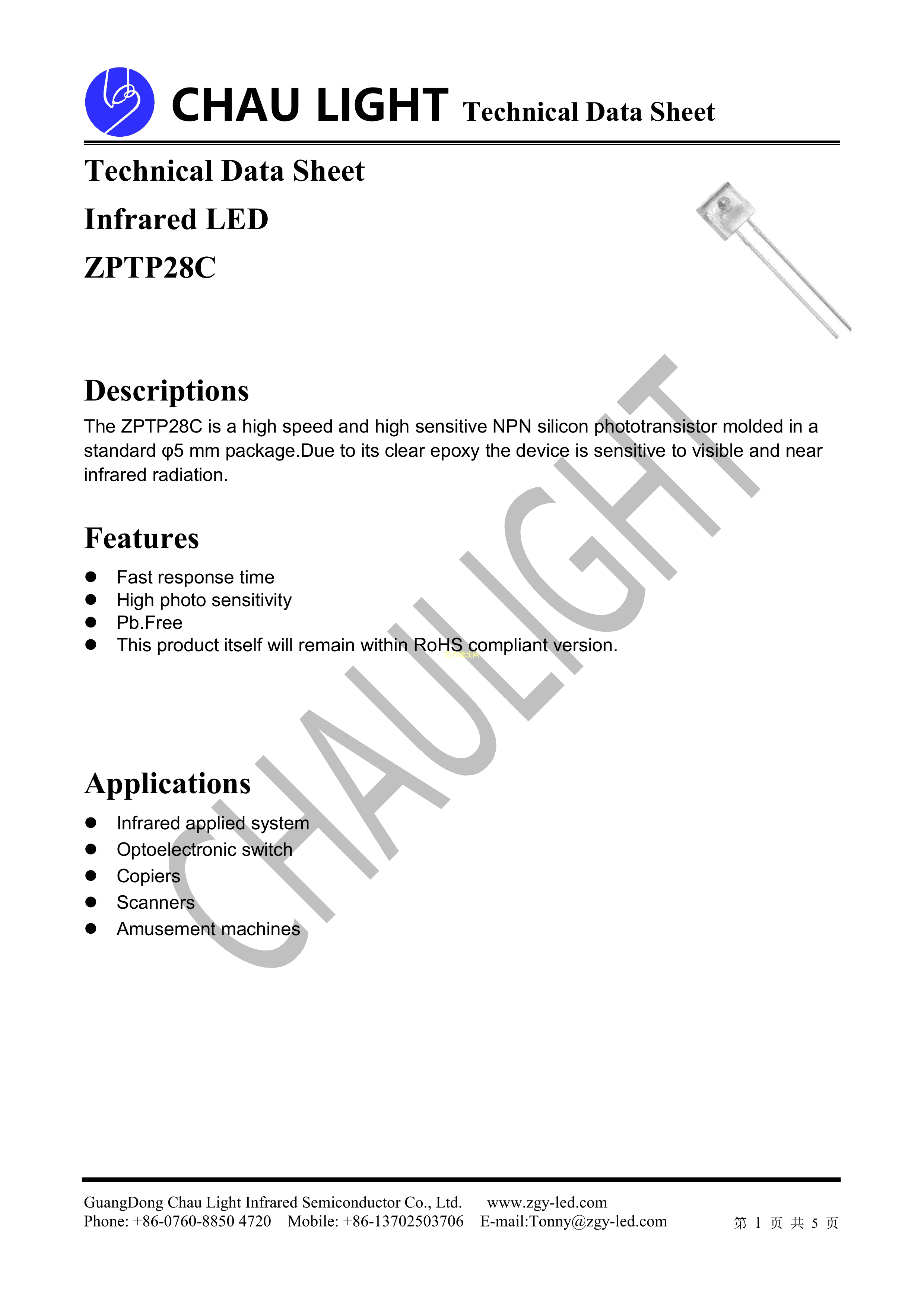 ZPTP28C数据手册ThroughHole封装ChauLight(洲光源)PDF规格书,中英文下载