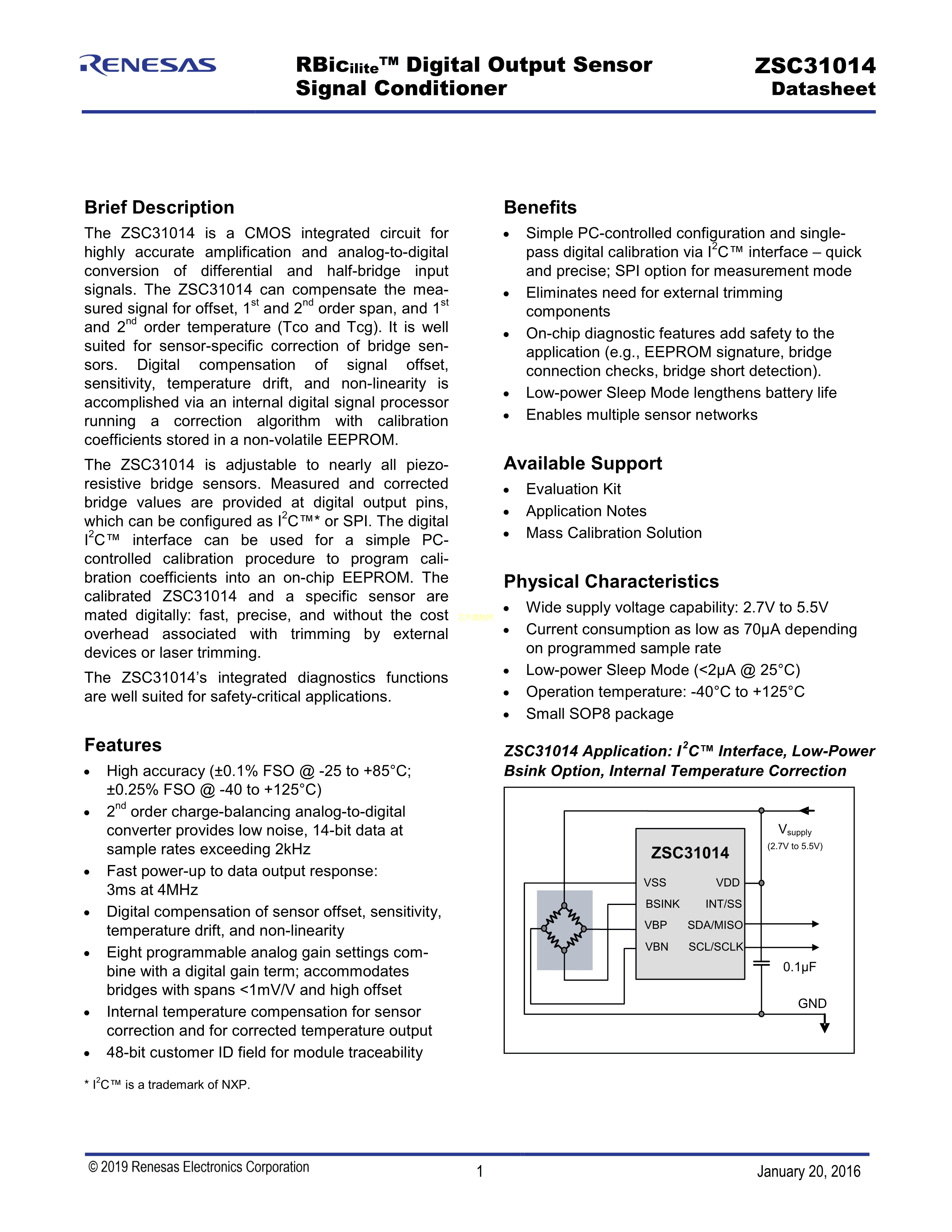 ZSC31014EIB数据手册-封装RENESAS(瑞萨)-IDTPDF规格书,中英文下载