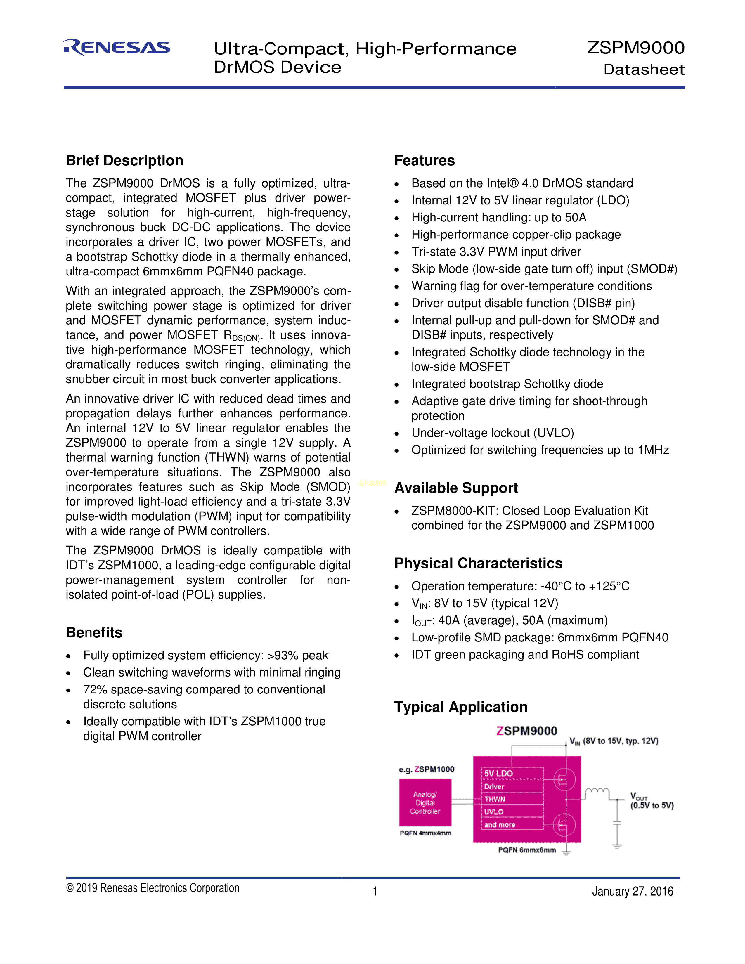 ZSPM9000AI1R数据手册-封装RENESAS(瑞萨)-IDTPDF规格书,中英文下载