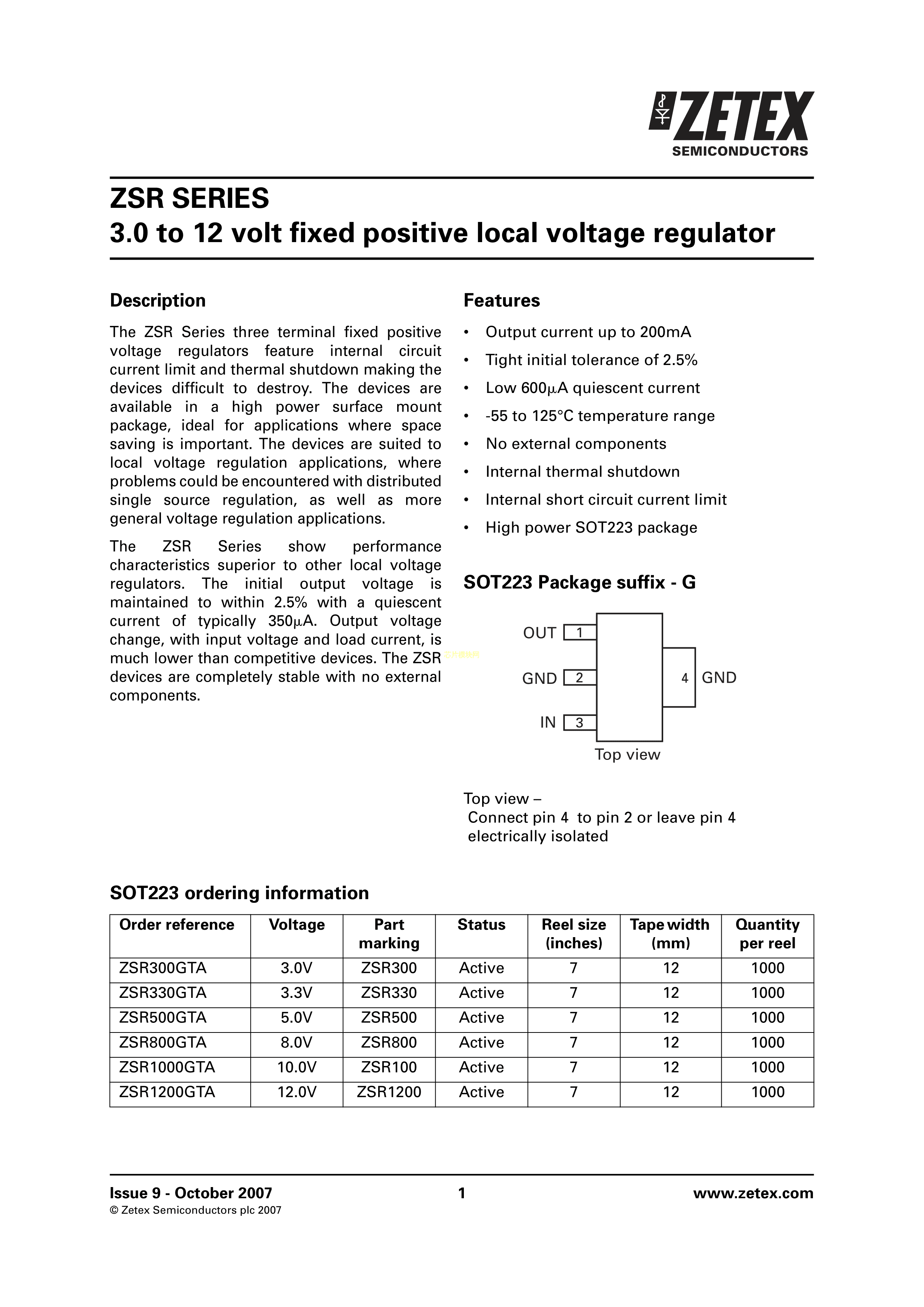 ZSR500GTA数据手册SOT-223封装DIODES(美台)PDF规格书,中英文下载