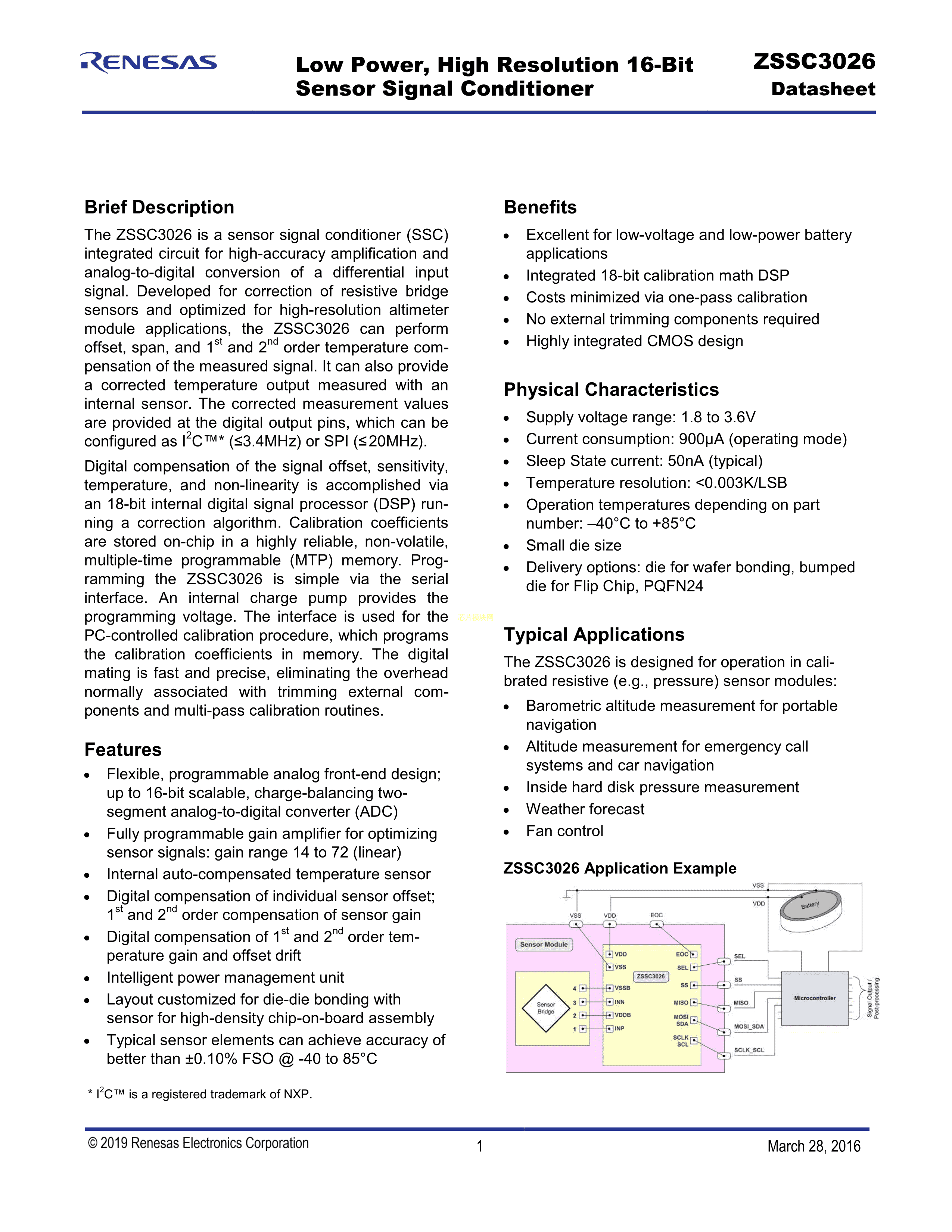 ZSSC3026CC1B数据手册-封装RENESAS(瑞萨)-IDTPDF规格书,中英文下载