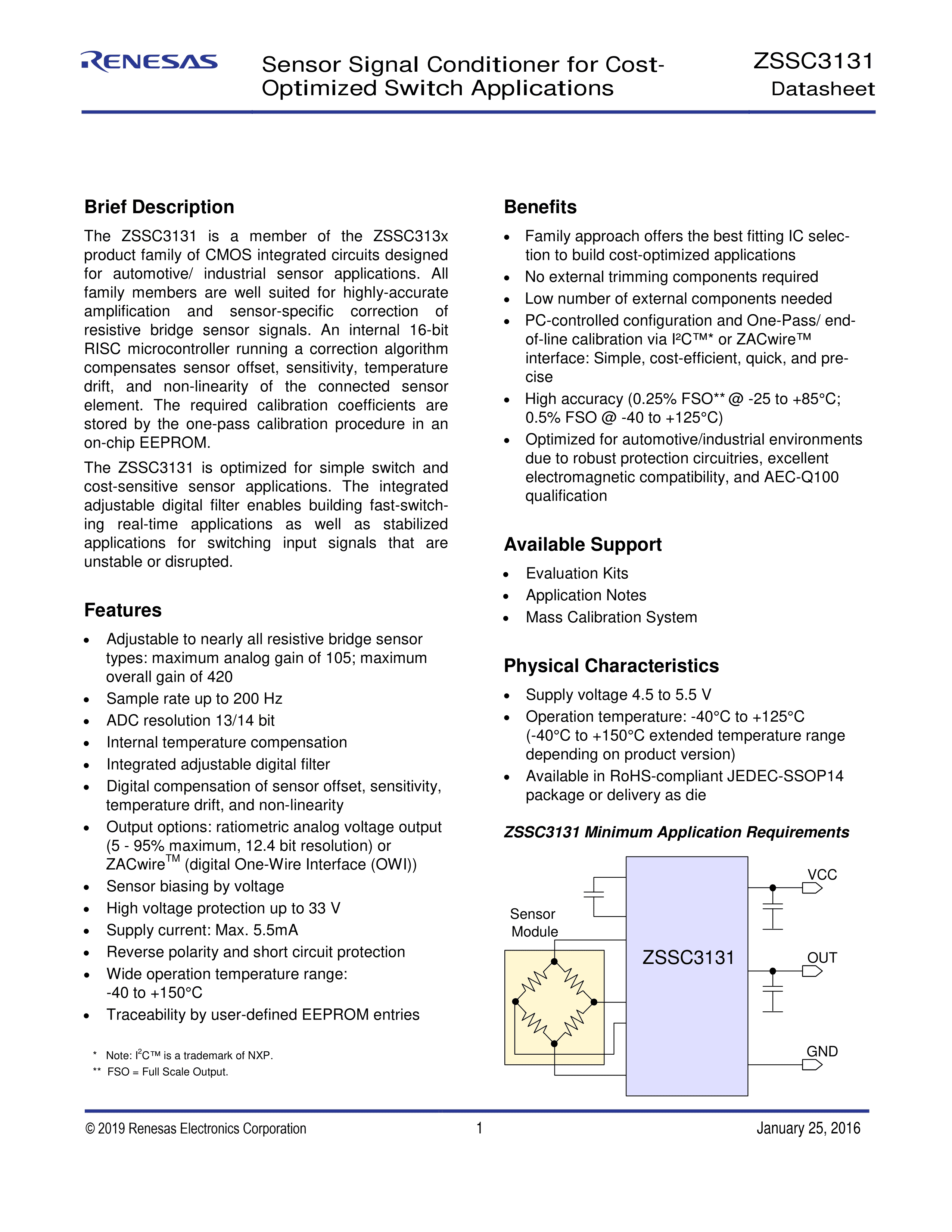 ZSSC3131BA2R数据手册SSOP-14封装RENESAS(瑞萨)-IDTPDF规格书,中英文