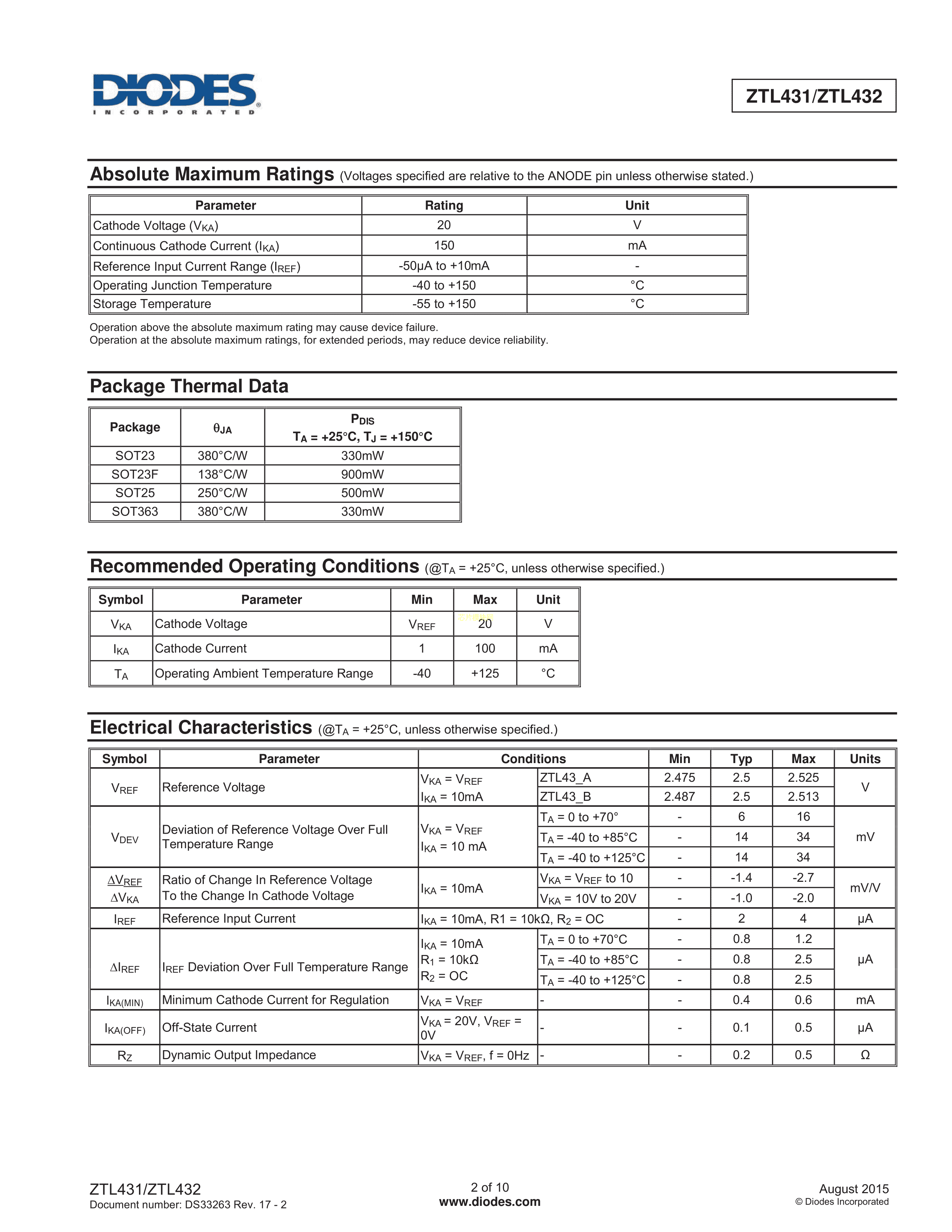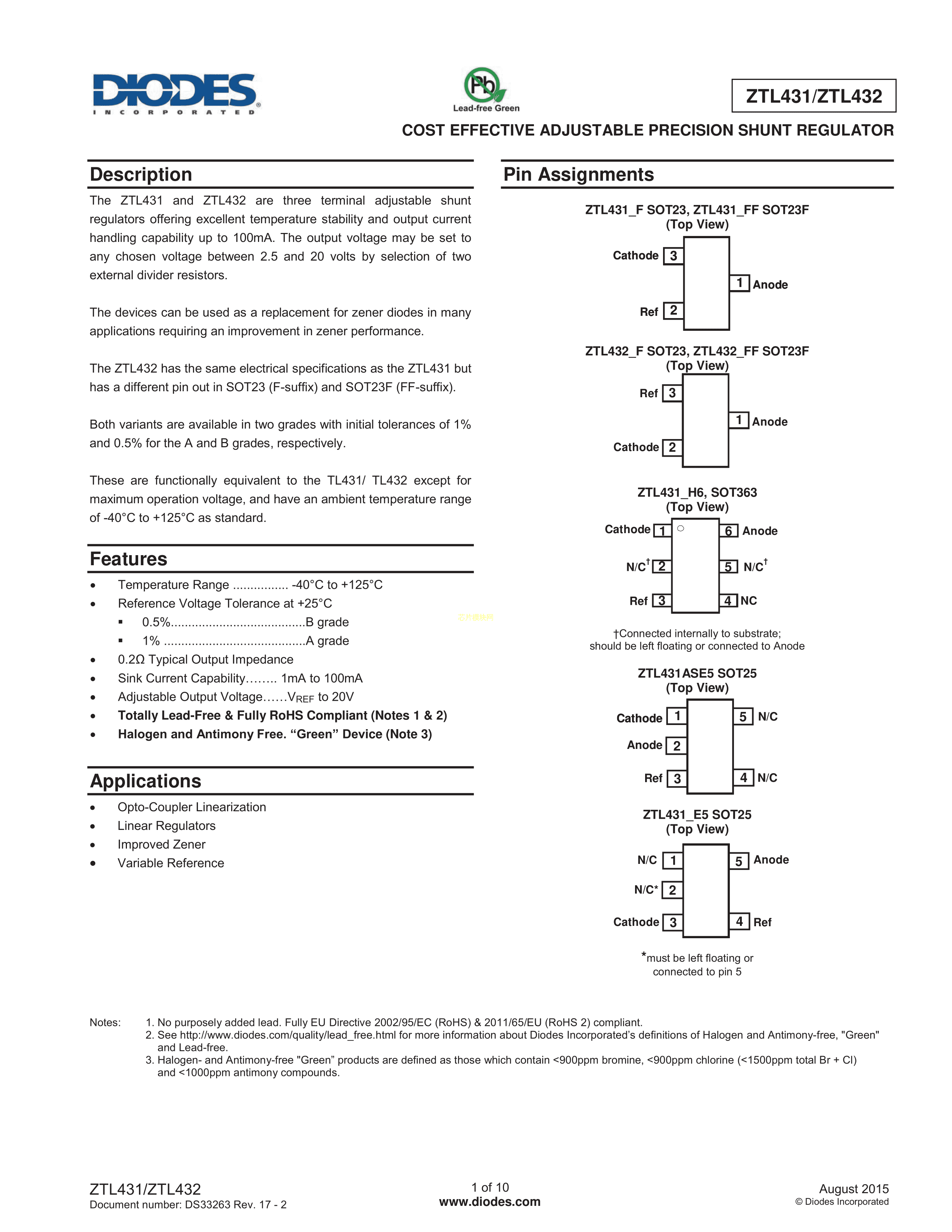 ZTL431AFFTA数据手册SOT-23(SOT-23-3)封装DIODES(美台)PDF规格书,