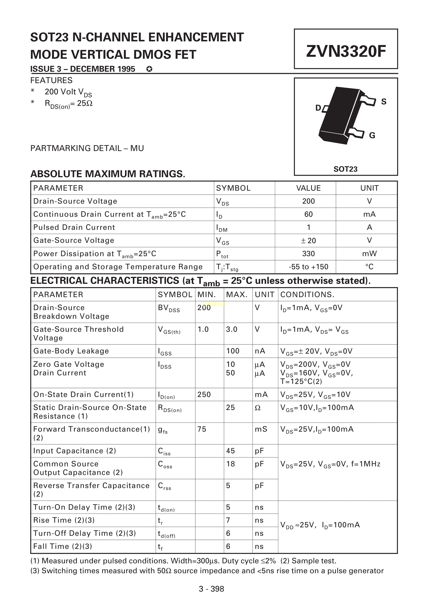 ZVN3320FTA数据手册SOT-23封装DIODES(美台)PDF规格书,中英文下载