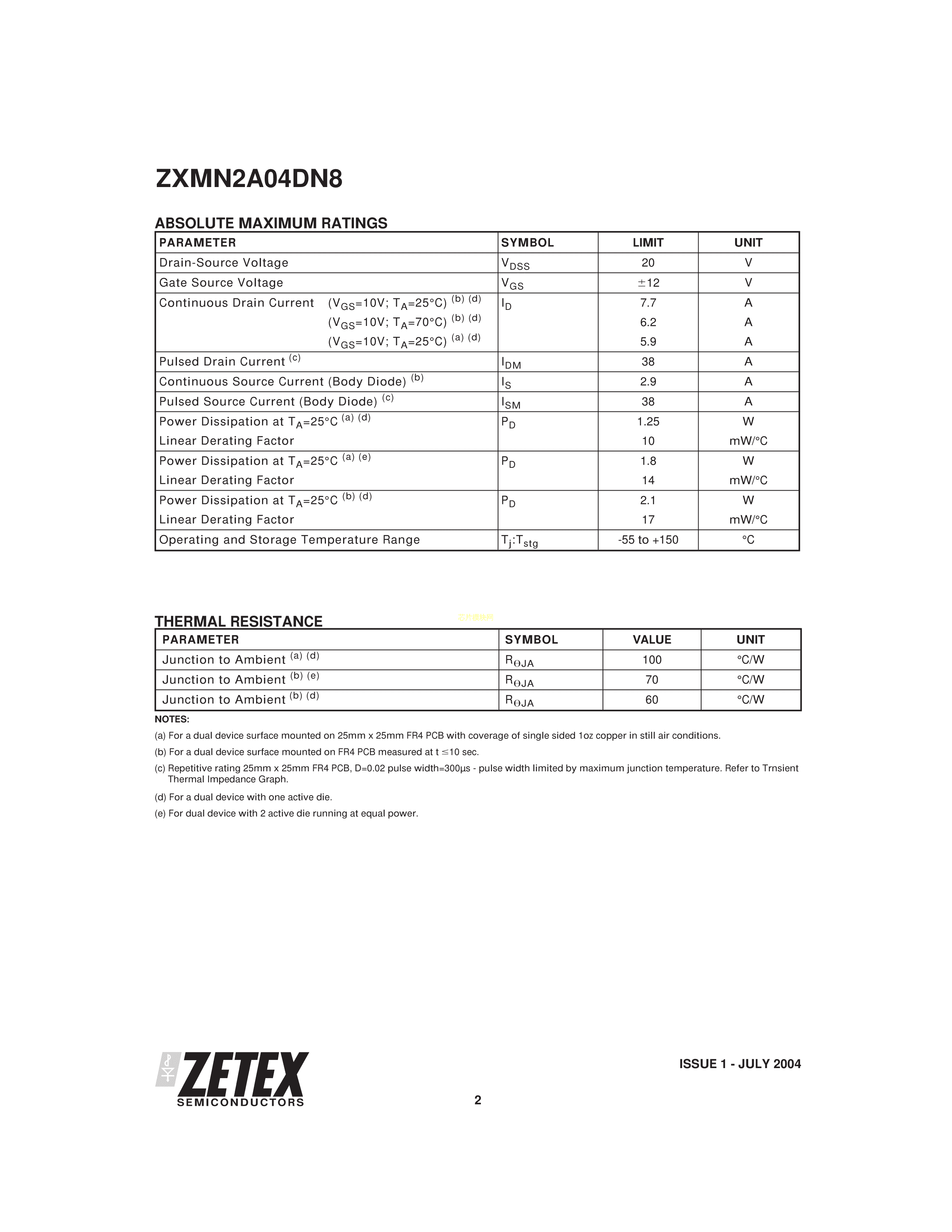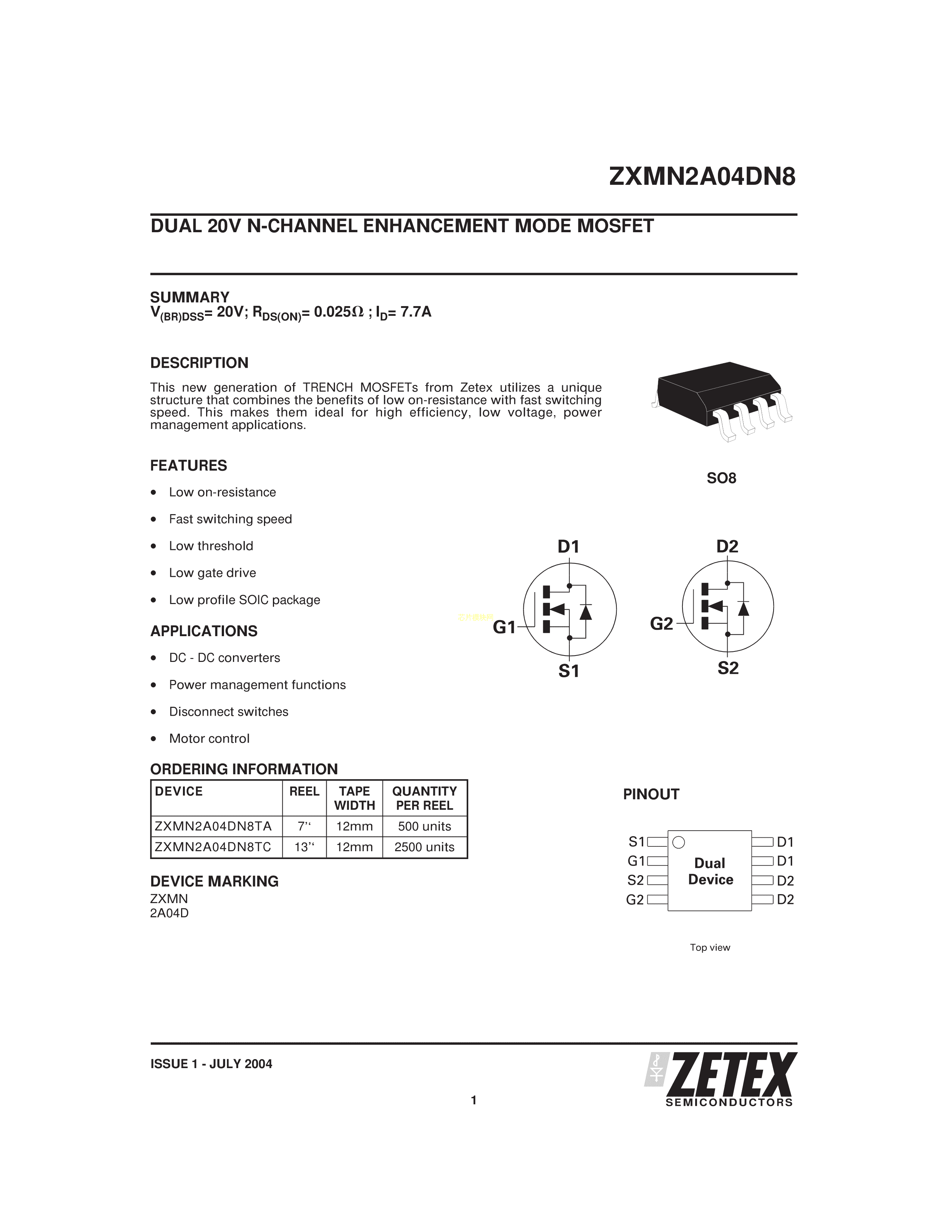 ZXMN2A04DN8TA数据手册SO-8封装DIODES(美台)PDF规格书,中英文下载