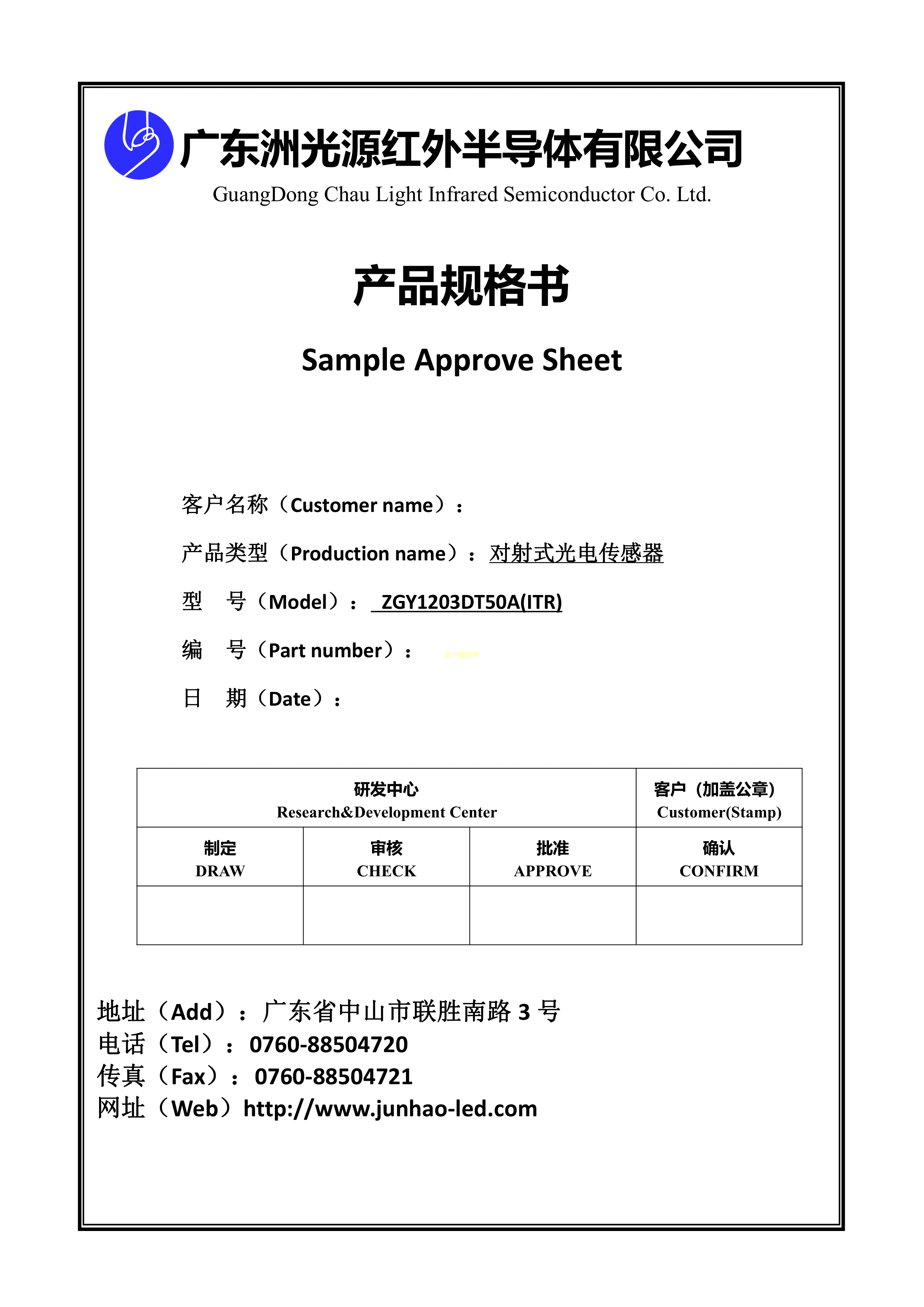 ZGY1203DT50A(ITR)数据手册ThroughHole封装ChauLight(洲光源)PDF规格书,中英文下载