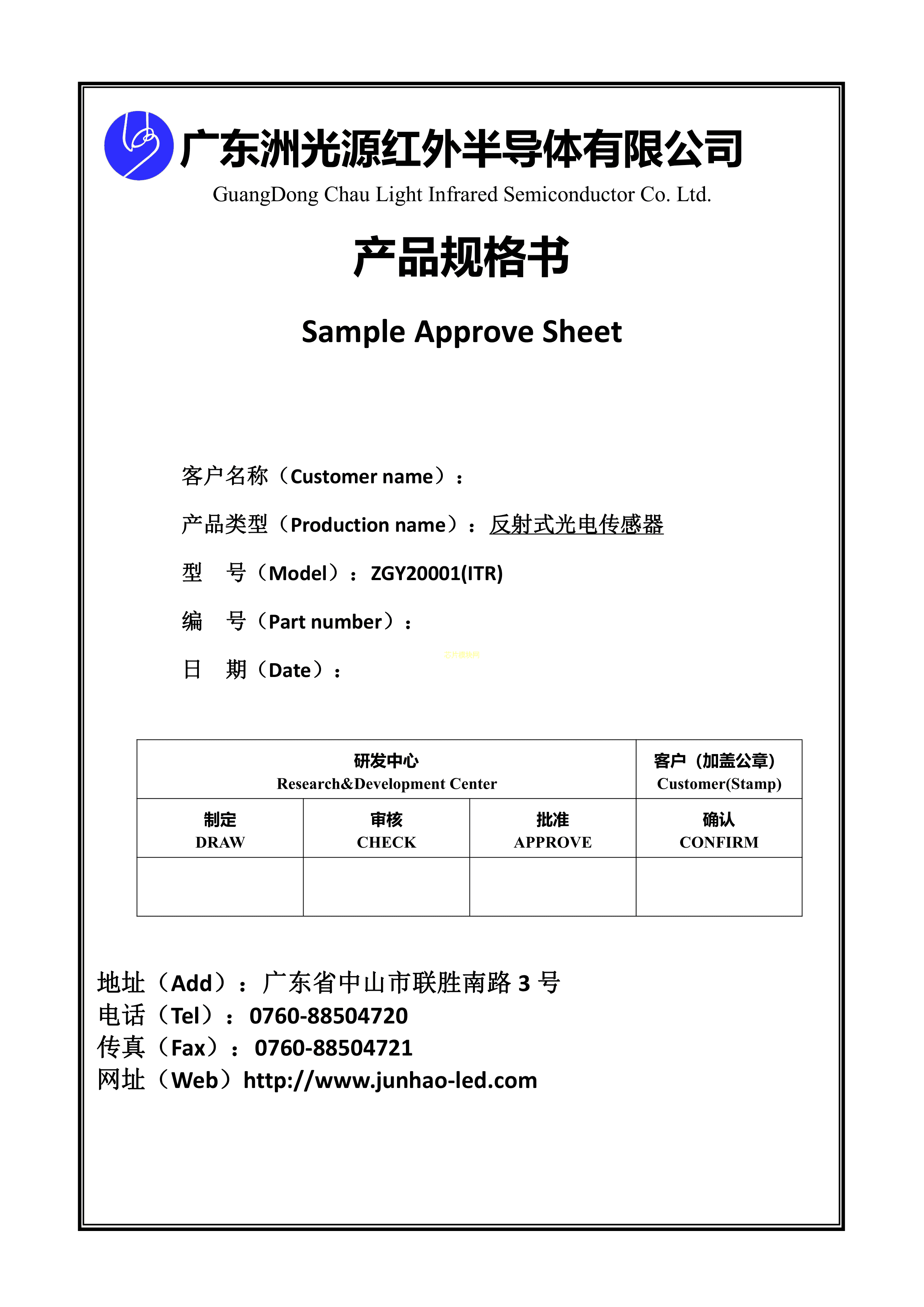 ZGY20001-T(ITR)数据手册ThroughHole封装ChauLight(洲光源)PDF规格书,中英文下载