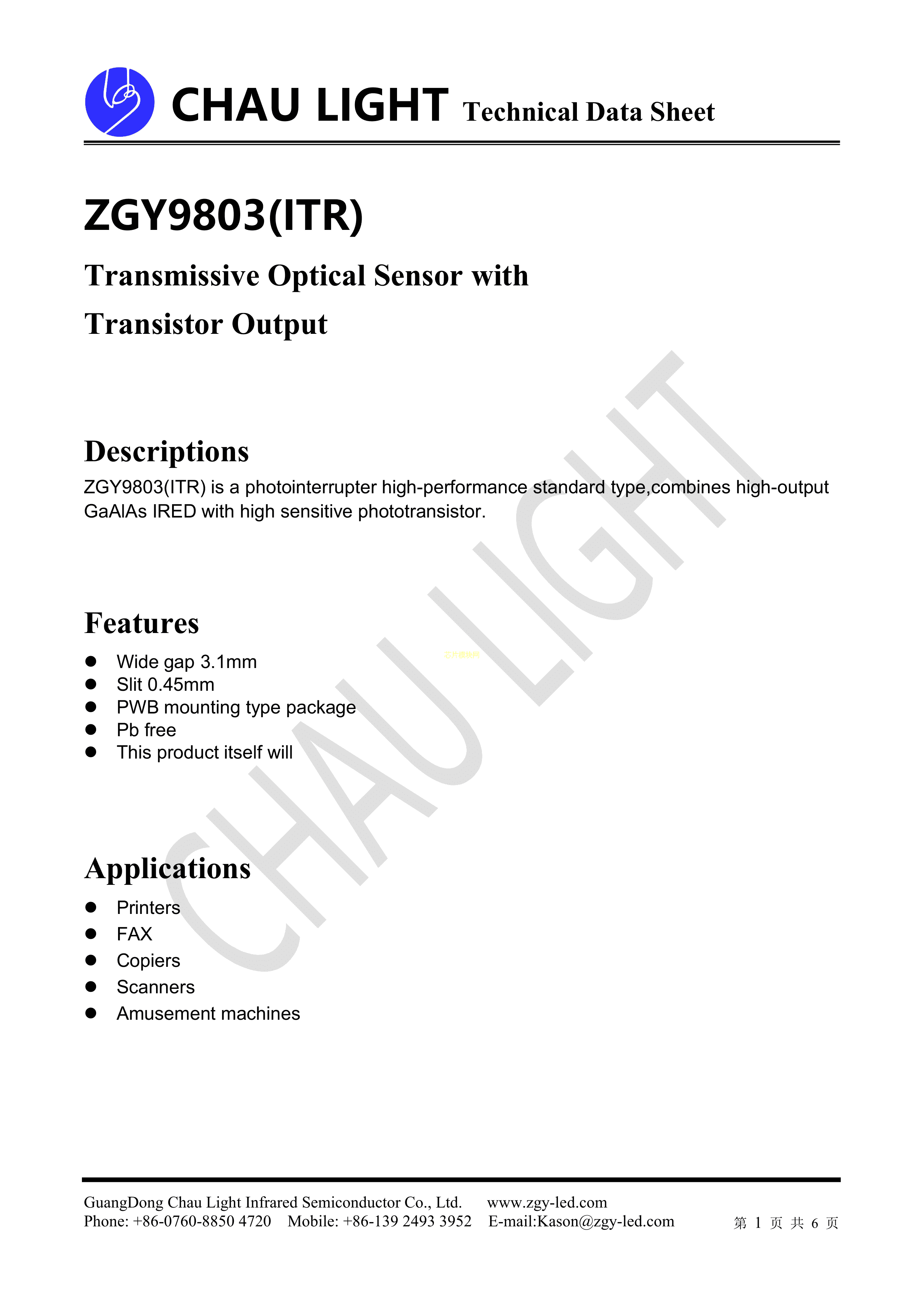ZGY9803(ITR)数据手册ThroughHole封装ChauLight(洲光源)PDF规格书,中英文下载