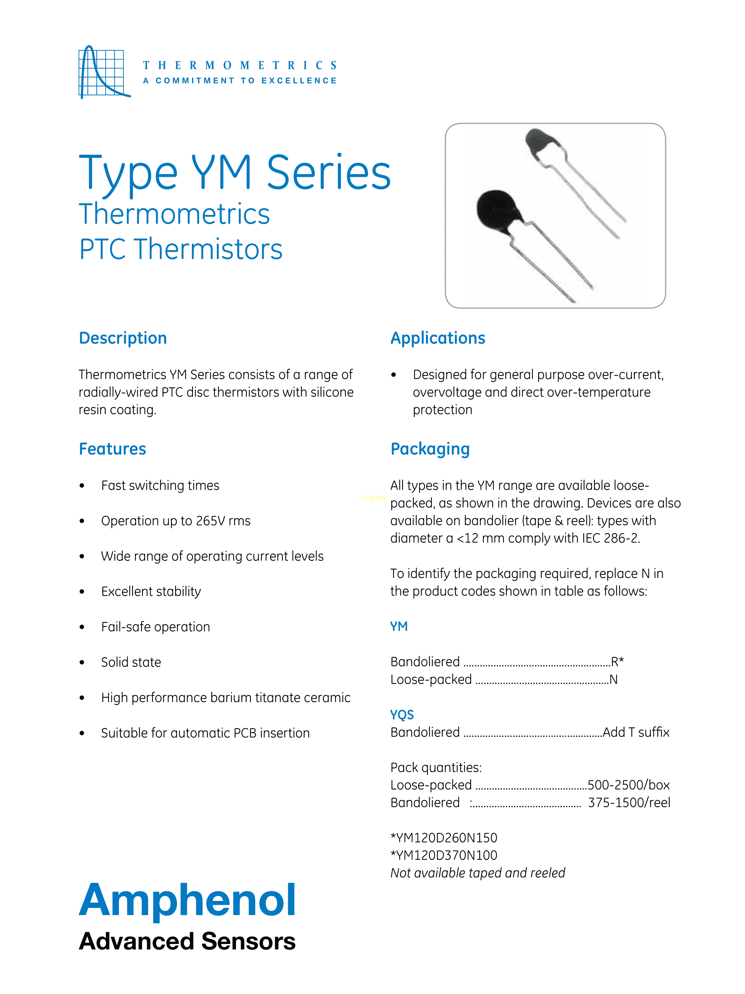 YPAL4.60N数据手册Radial封装AmphenolPDF规格书,中英文下载