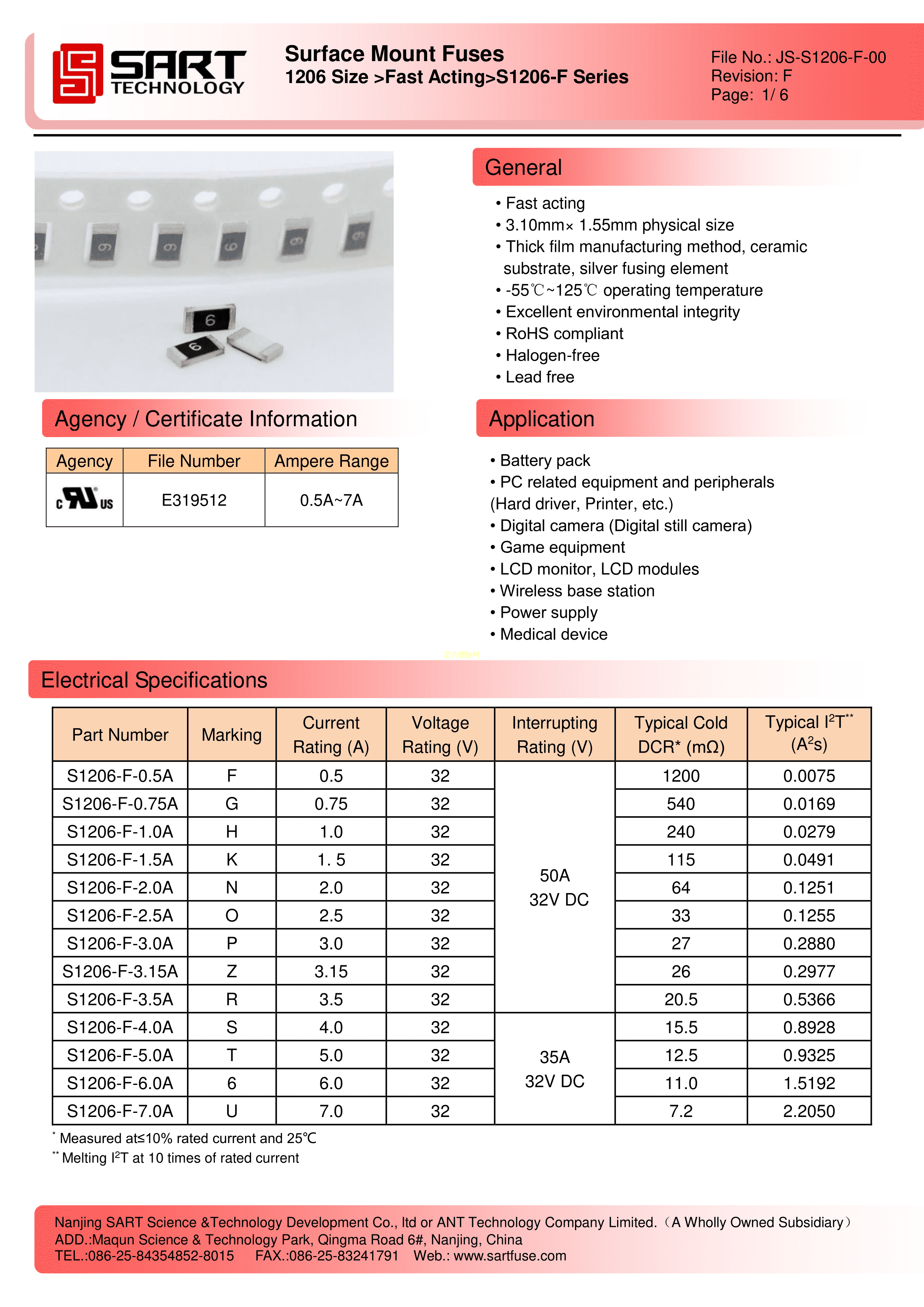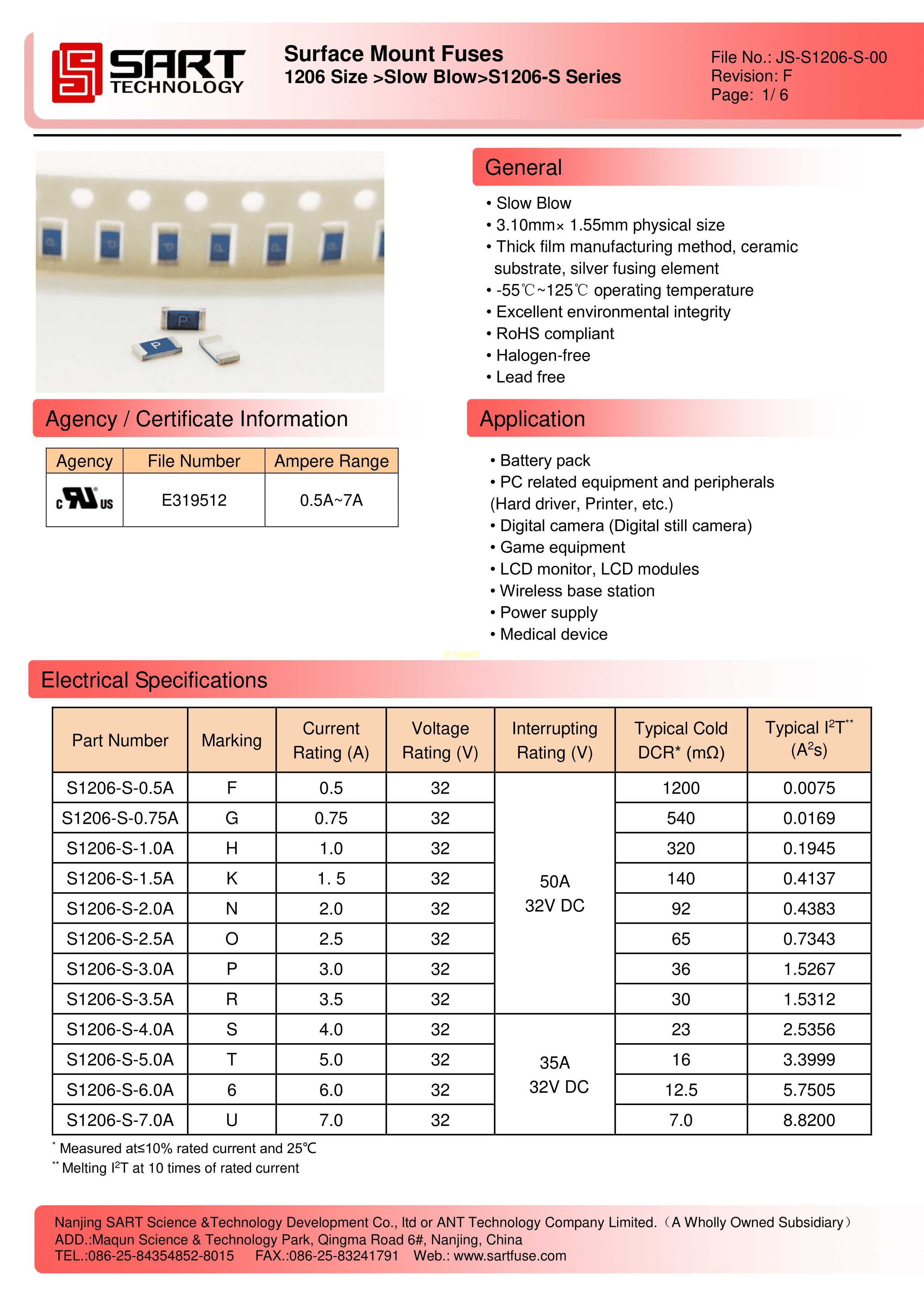 S1206-F-4.0A数据手册1206封装SART(萨特)PDF规格书,中英文下载