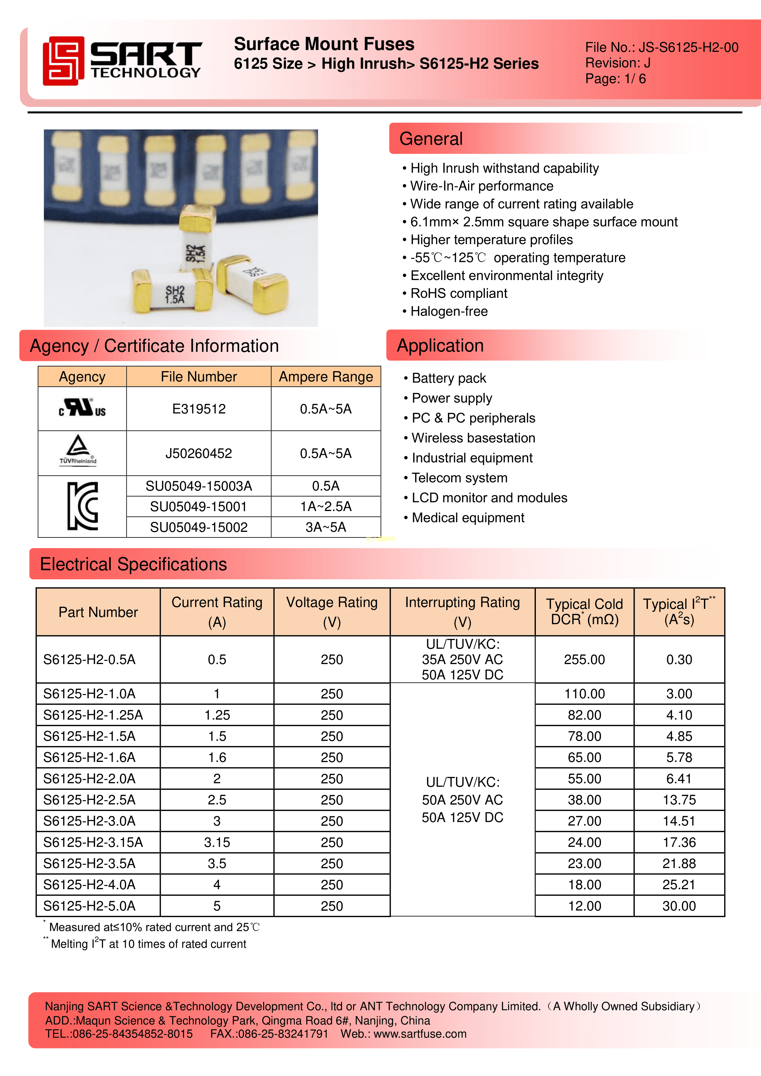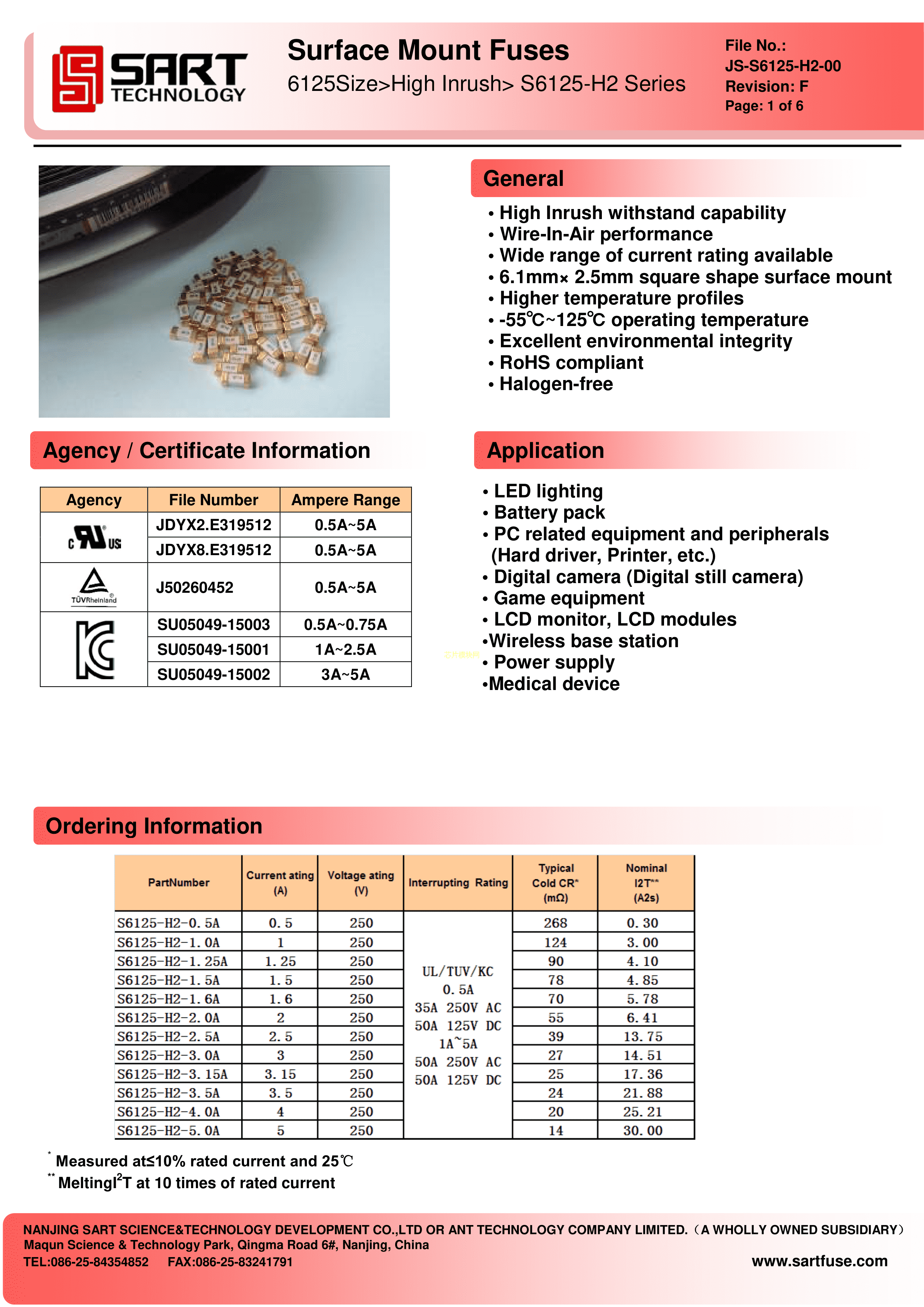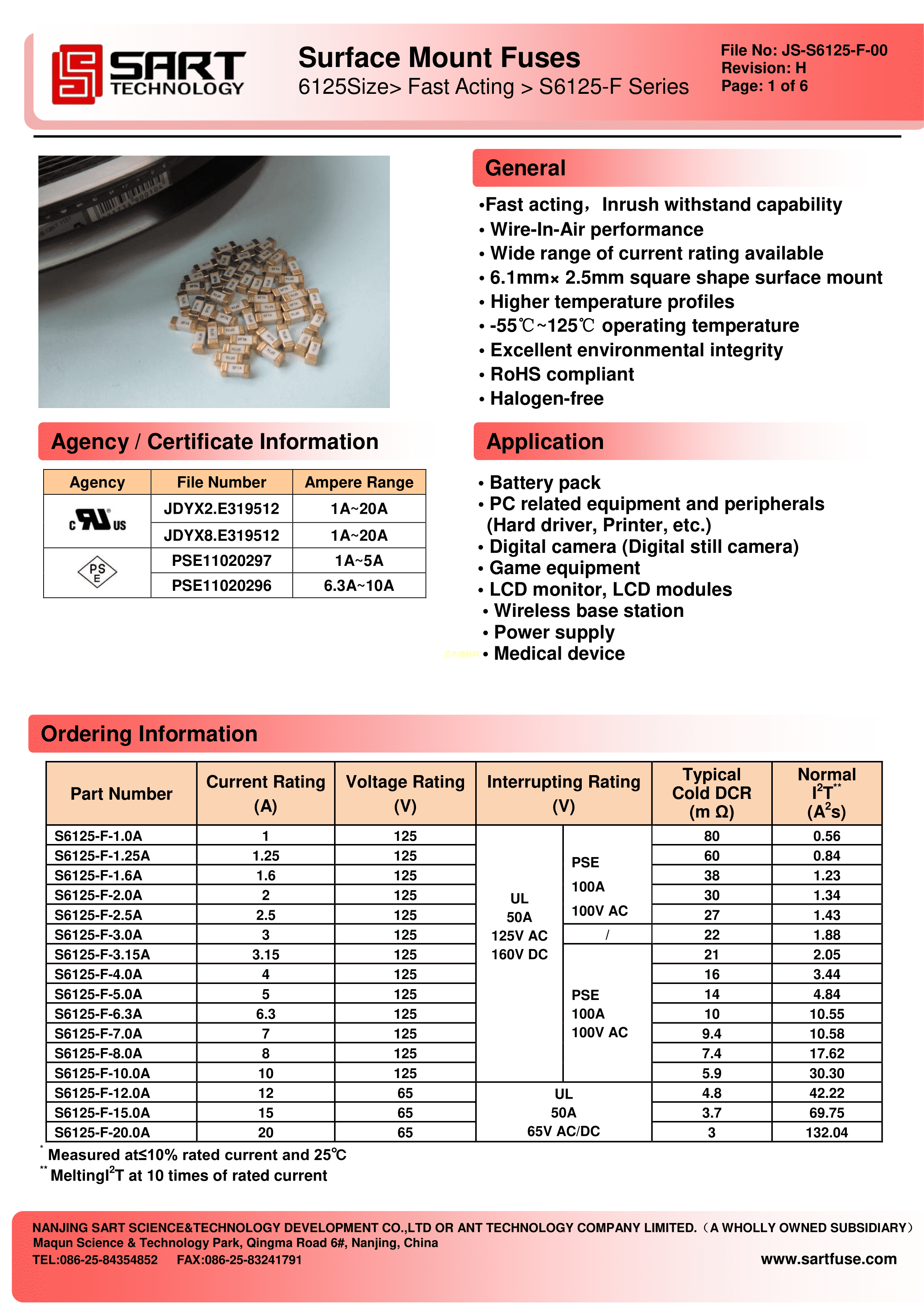 S6125-F-2.0A数据手册SMD封装SART(萨特)PDF规格书,中英文下载