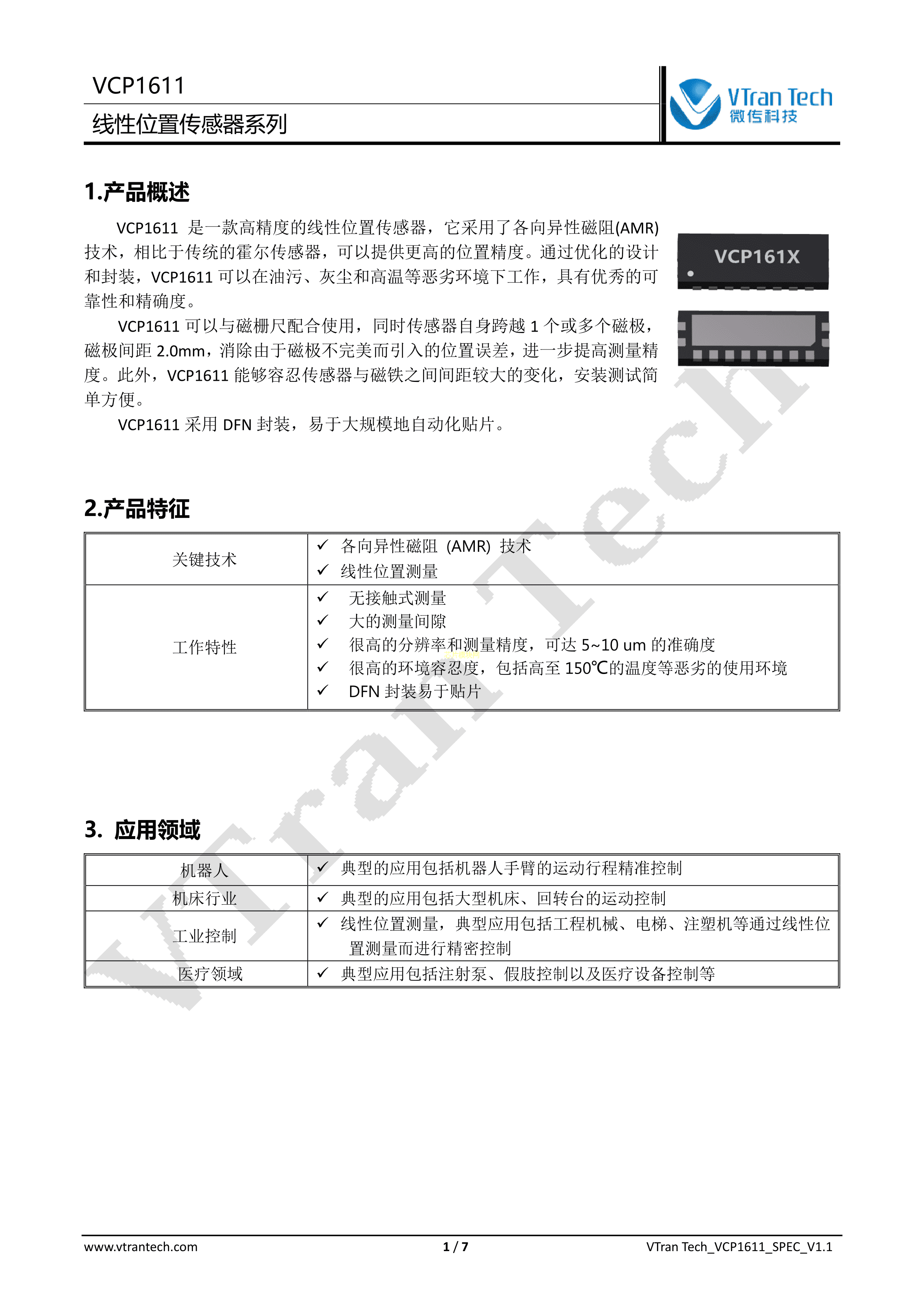 VCP1611(2mm)数据手册DFN(6x2)封装VTranTech(微传)PDF规格书,中英文下载