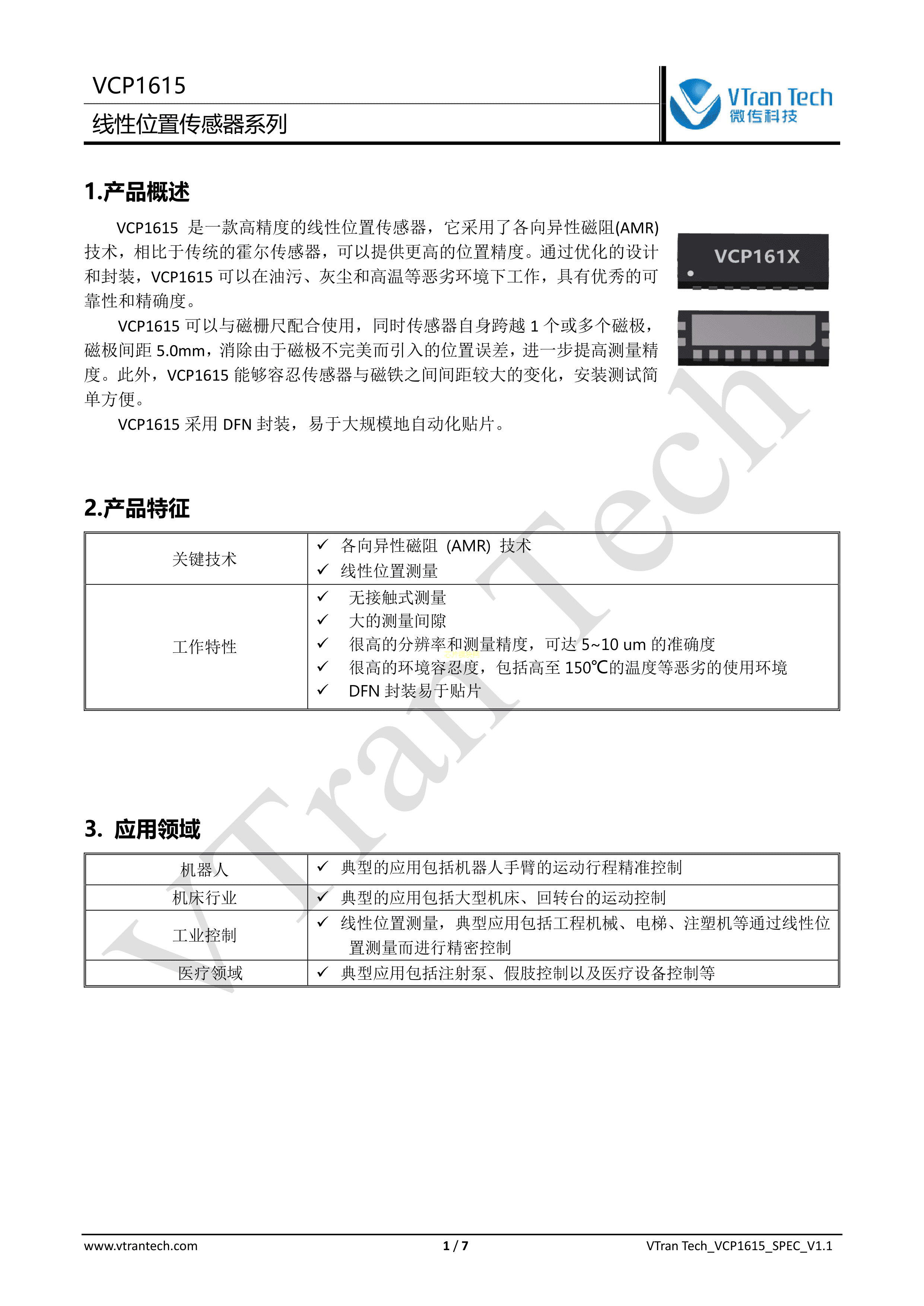 VCP1615(5mm)数据手册DFN(6x2)封装VTranTech(微传)PDF规格书,中英文下载