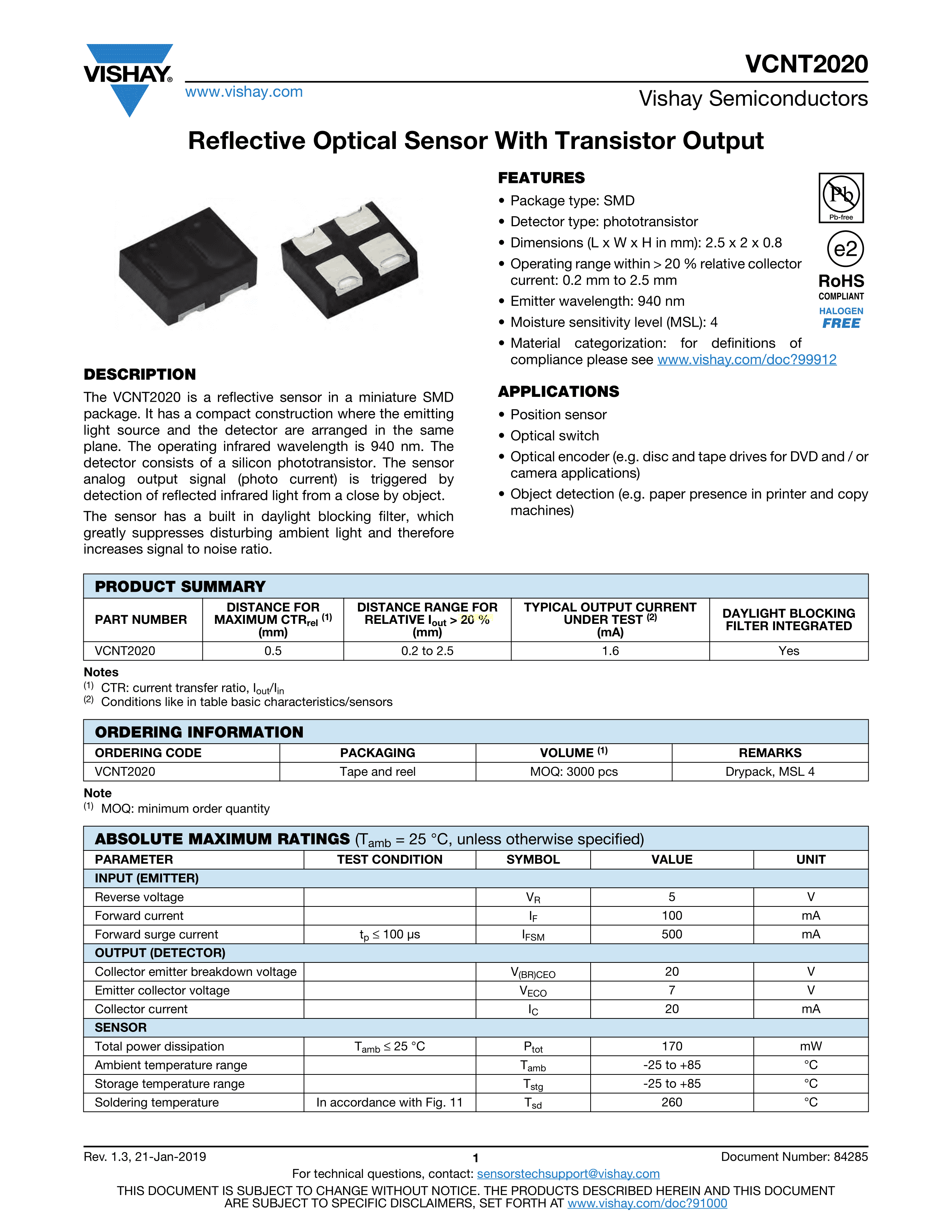 VCNT2020数据手册Module封装VISHAY(威世)PDF规格书,中英文下载