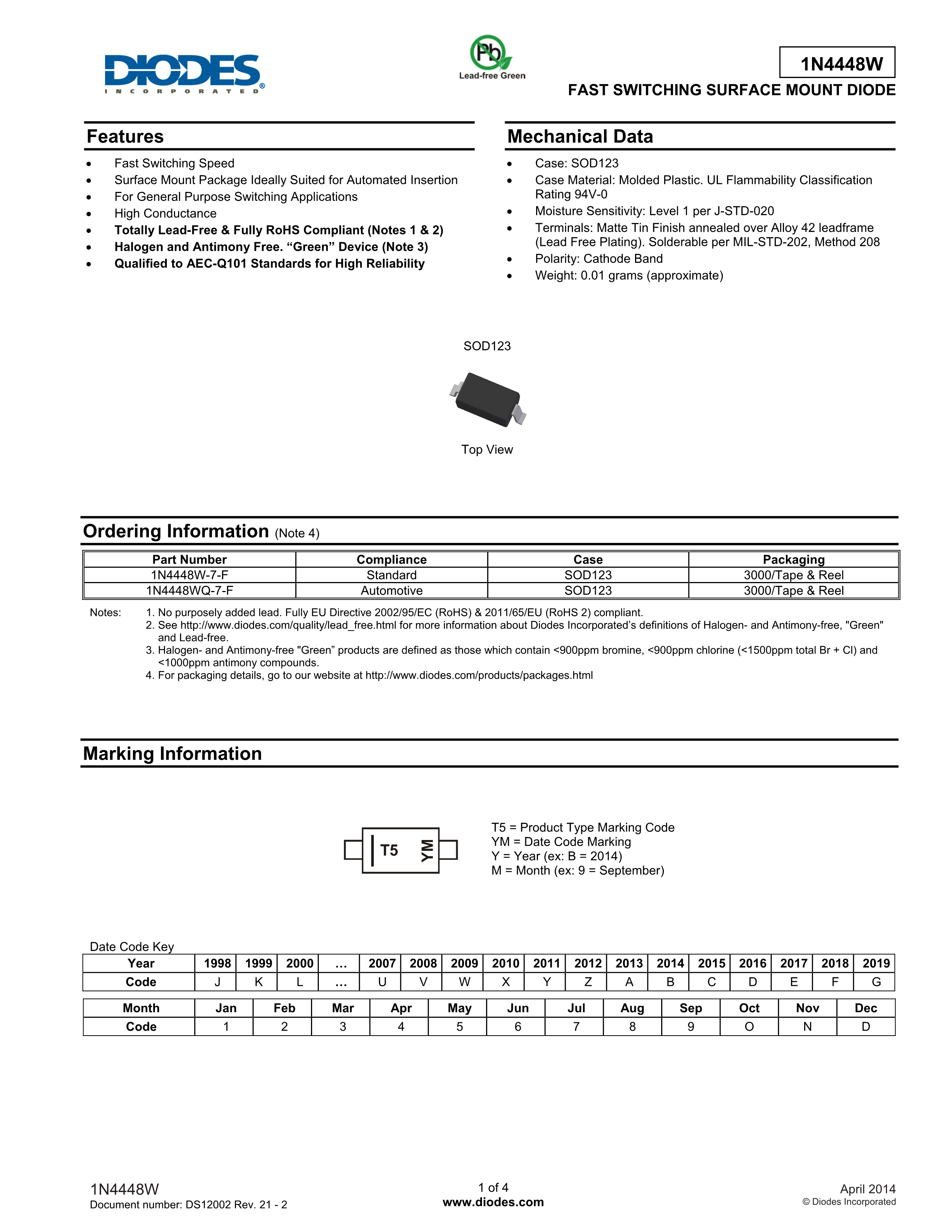 1N4448WQ-7-F数据手册SOD-123封装DIODES(美台)PDF规格书,中英文下载